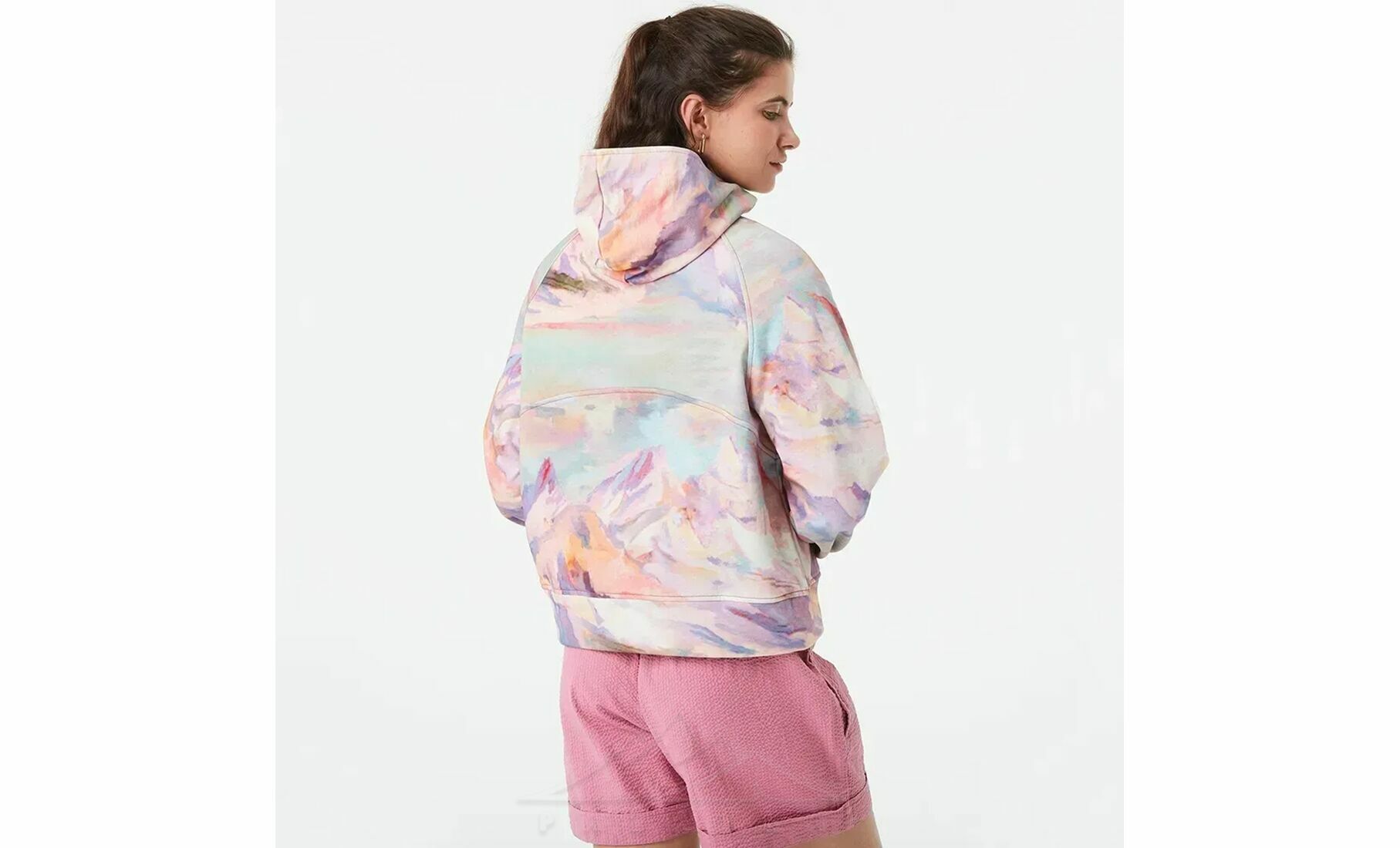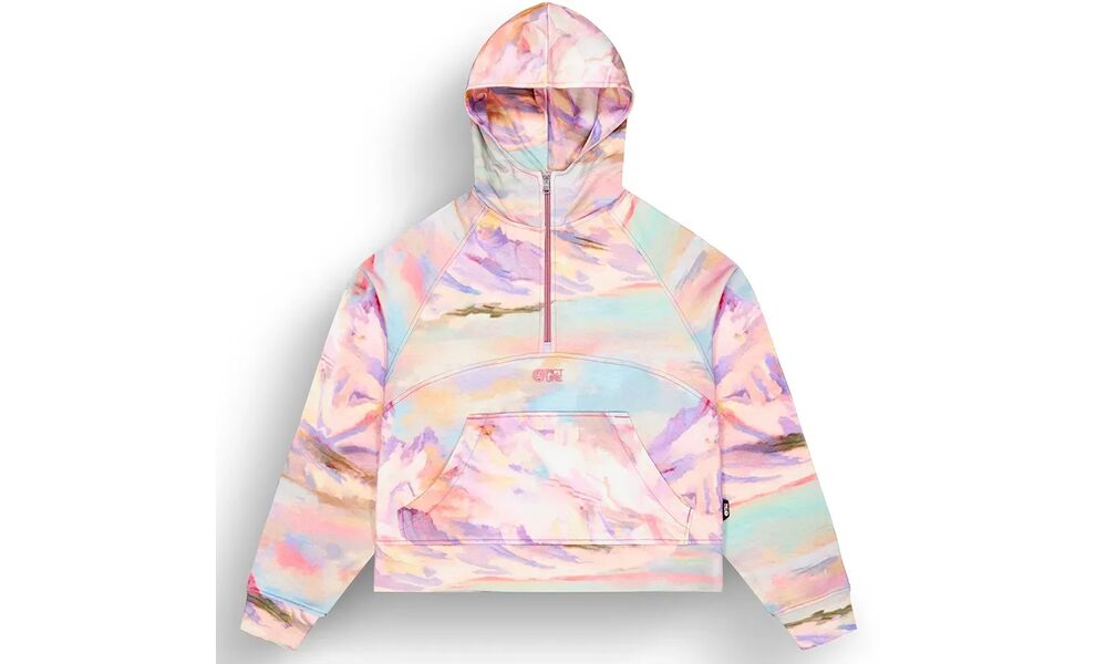 Picture Organic Quenda 1/2 Zip Printed — жіноча бавовняна толстовка з високим коміром та ергономічним капюшоном, що поєднує комфорт і практичність. Вона ідеально підходить для міського носіння, подорожей та спокійного відпочинку на природі, слугуючи самостійним шаром у помірну погоду або додатковим утепленням за нижчих температур.