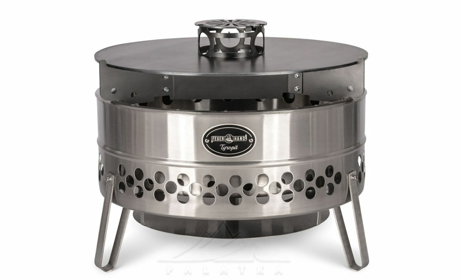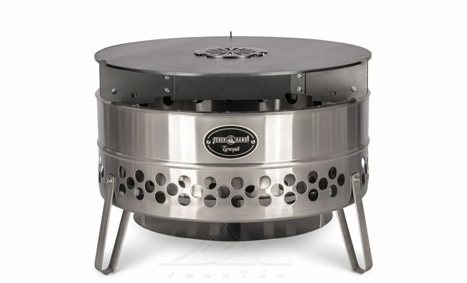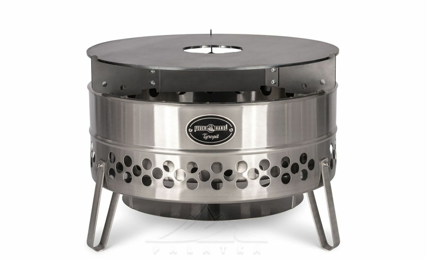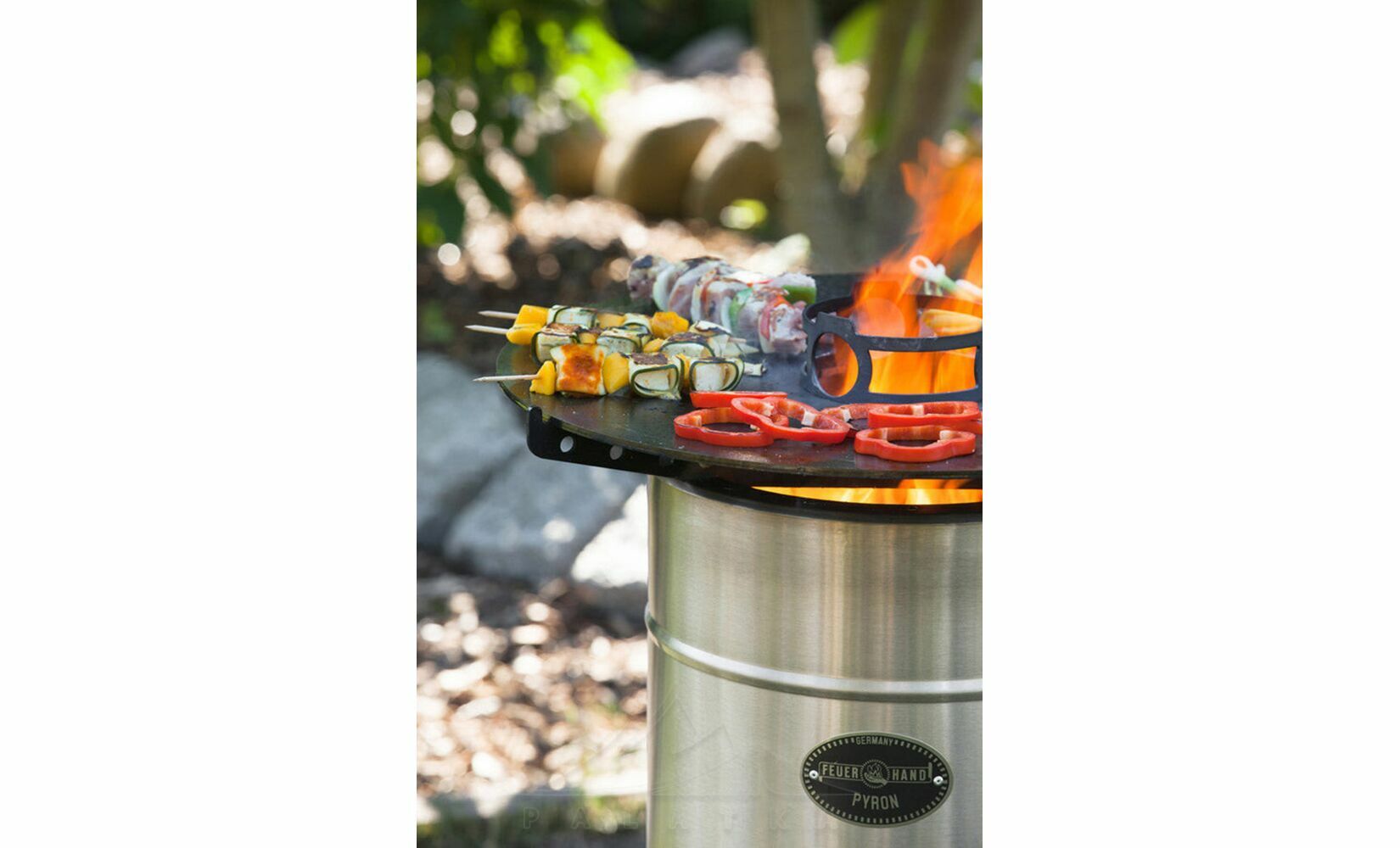 Feuerhand Griddle Plate — це масивна сталева поверхня для приготування у стилі a la plancha — інтенсивне обсмажування в центрі з м’яким копченням по краях. Розроблена для використання з портативною пічкою Pyron та пічкою-гриль Tyropit, вона встановлюється над камерою згоряння та перетворює вогнище на повноцінну кемпінгову кухню.