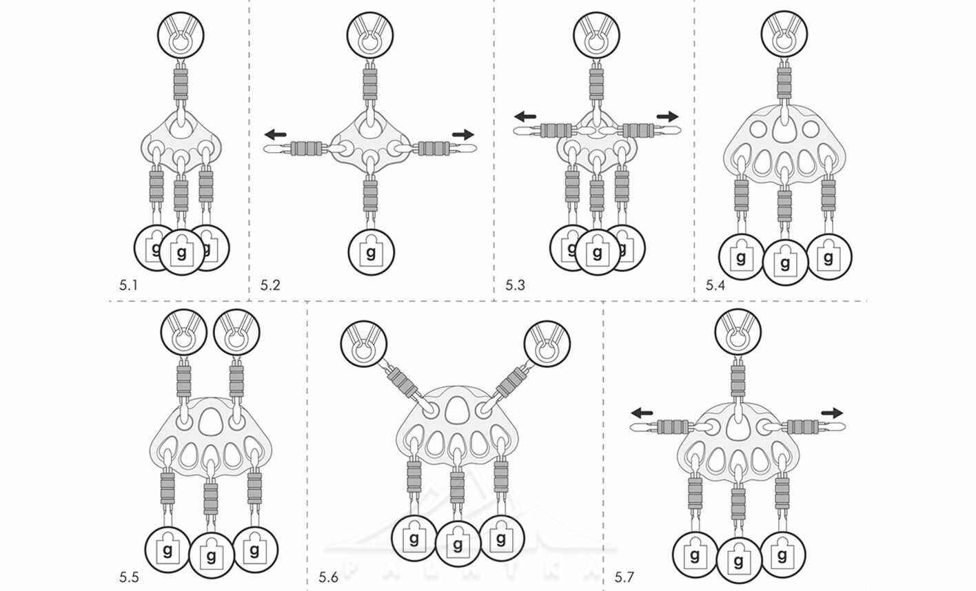 - Головний отвір вміщує до трьох карабінів одночасно, що спрощує організацію системи.