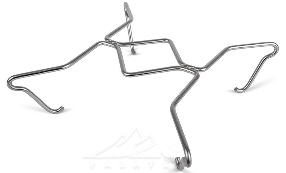 - Чотири вигнуті ніжки надійно фіксуються за стінки мангала для безпечного використання.