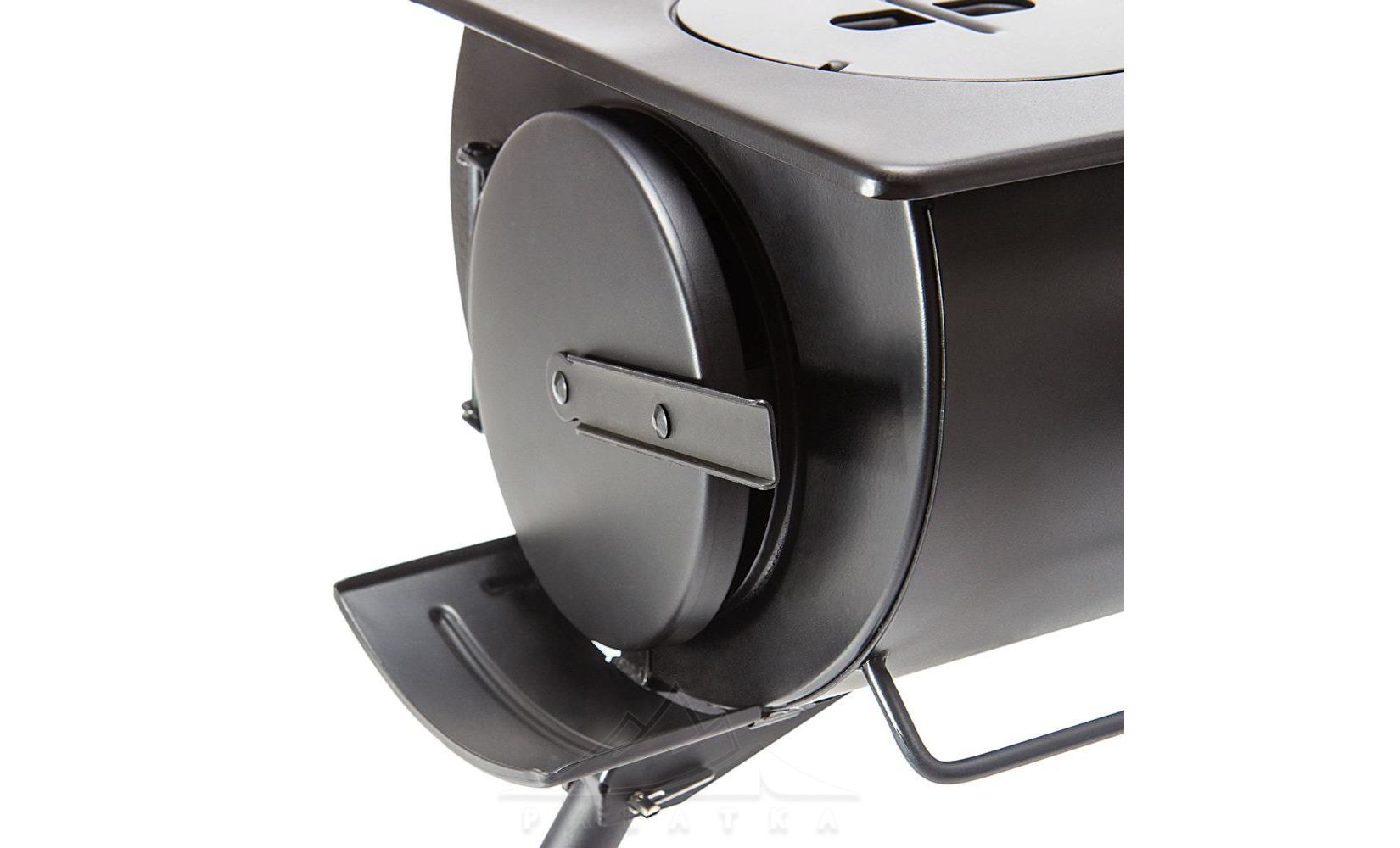 - Продумана конструкція: ніжки пічки можна скласти, а частини топки можна розмістити всередині корпусу, щоб заощадити місце.