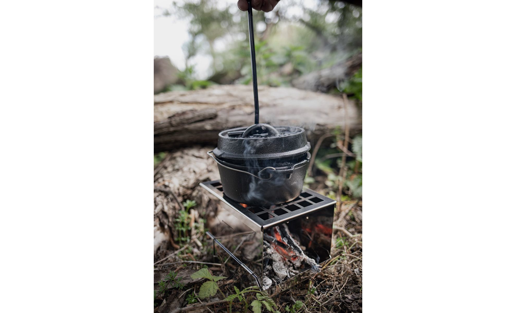 Petromax Pocket Stove — портативна піч з міцної нержавіючої сталі, що працює на дровах та вугіллі. Ідеально підходить для смаження на грилі, приготування їжі та запікання.