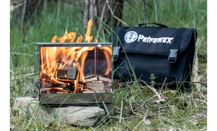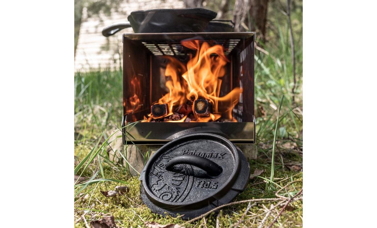 Petromax Pocket Stove — портативна піч з міцної нержавіючої сталі, що працює на дровах та вугіллі. Ідеально підходить для смаження на грилі, приготування їжі та запікання.