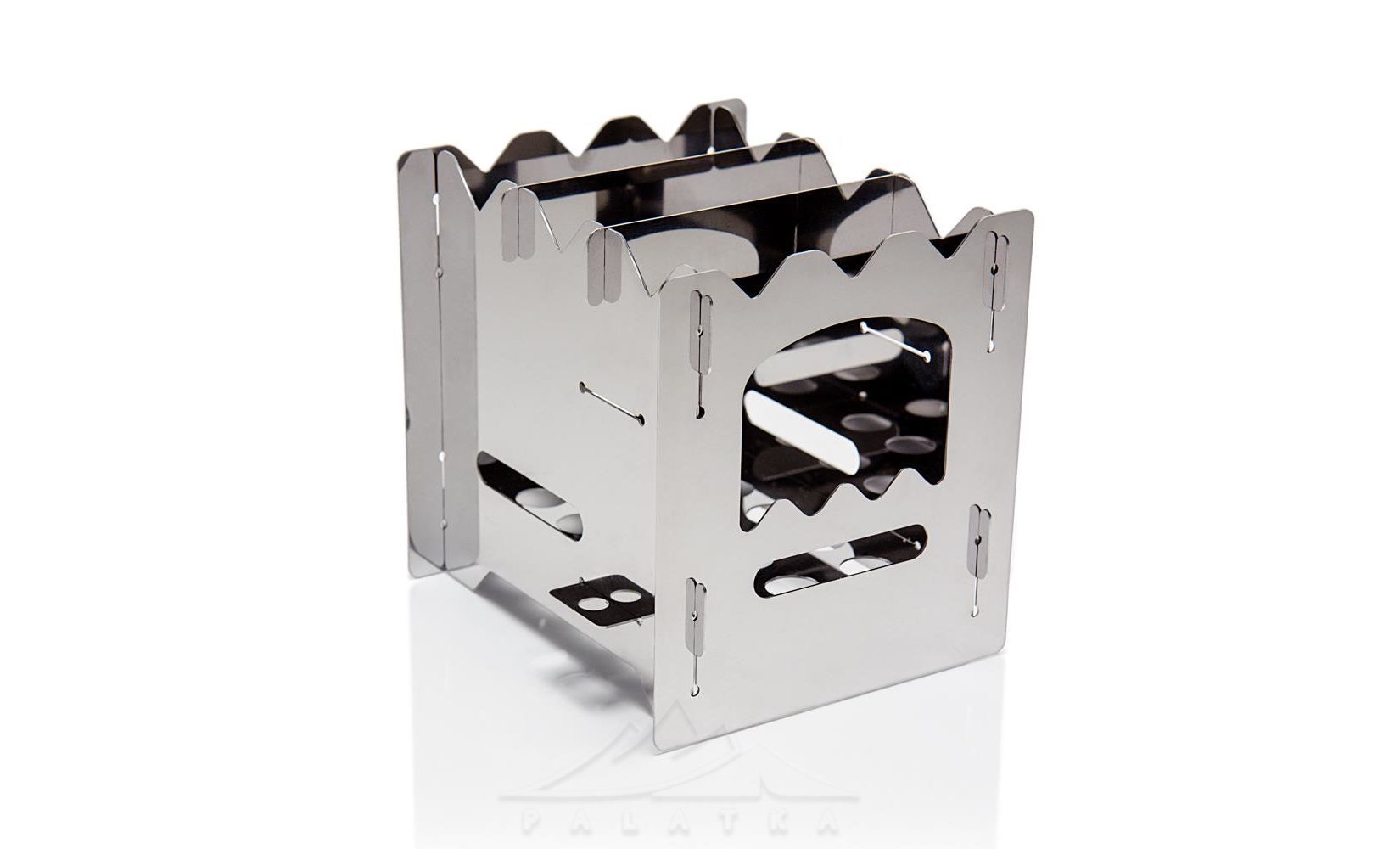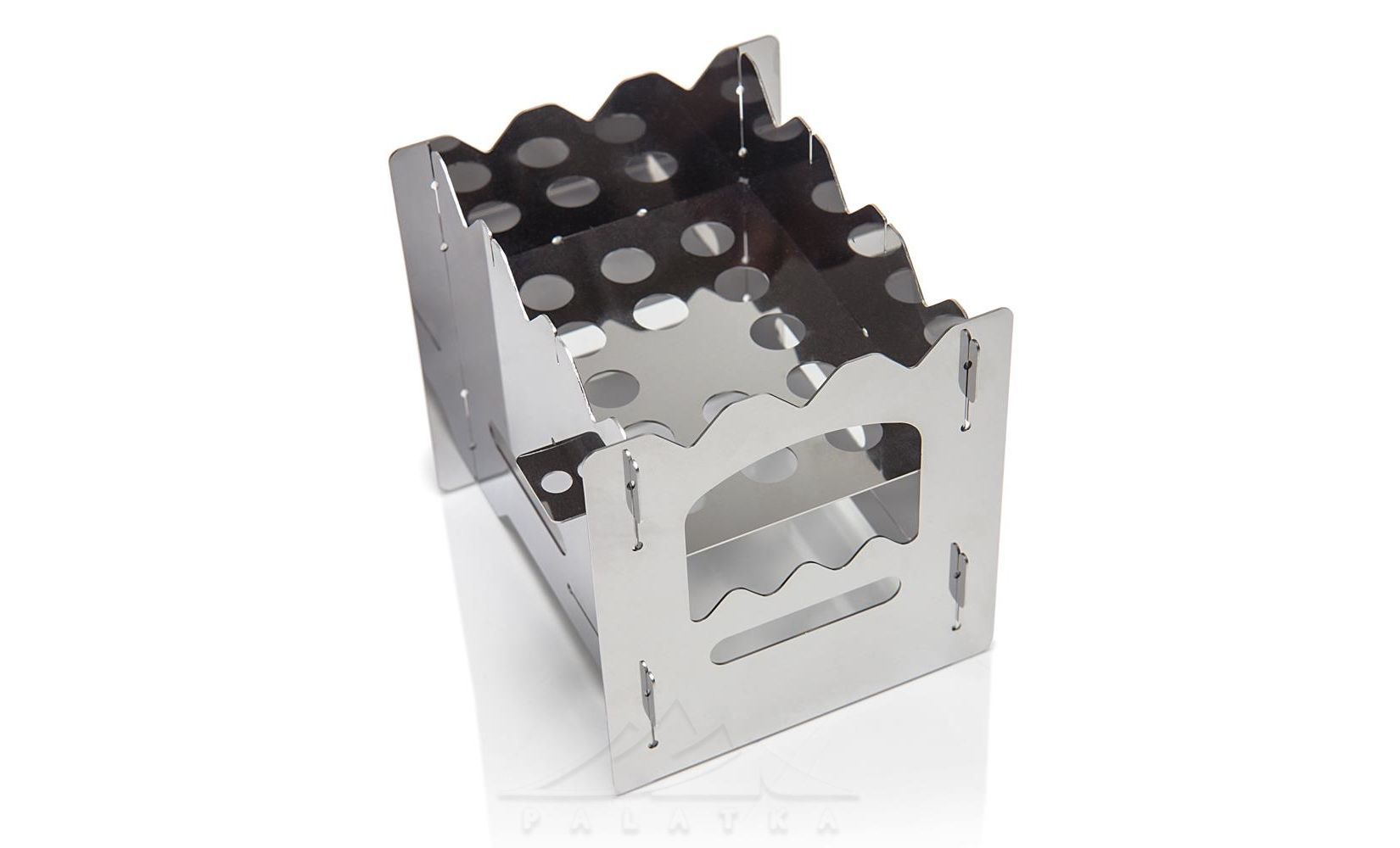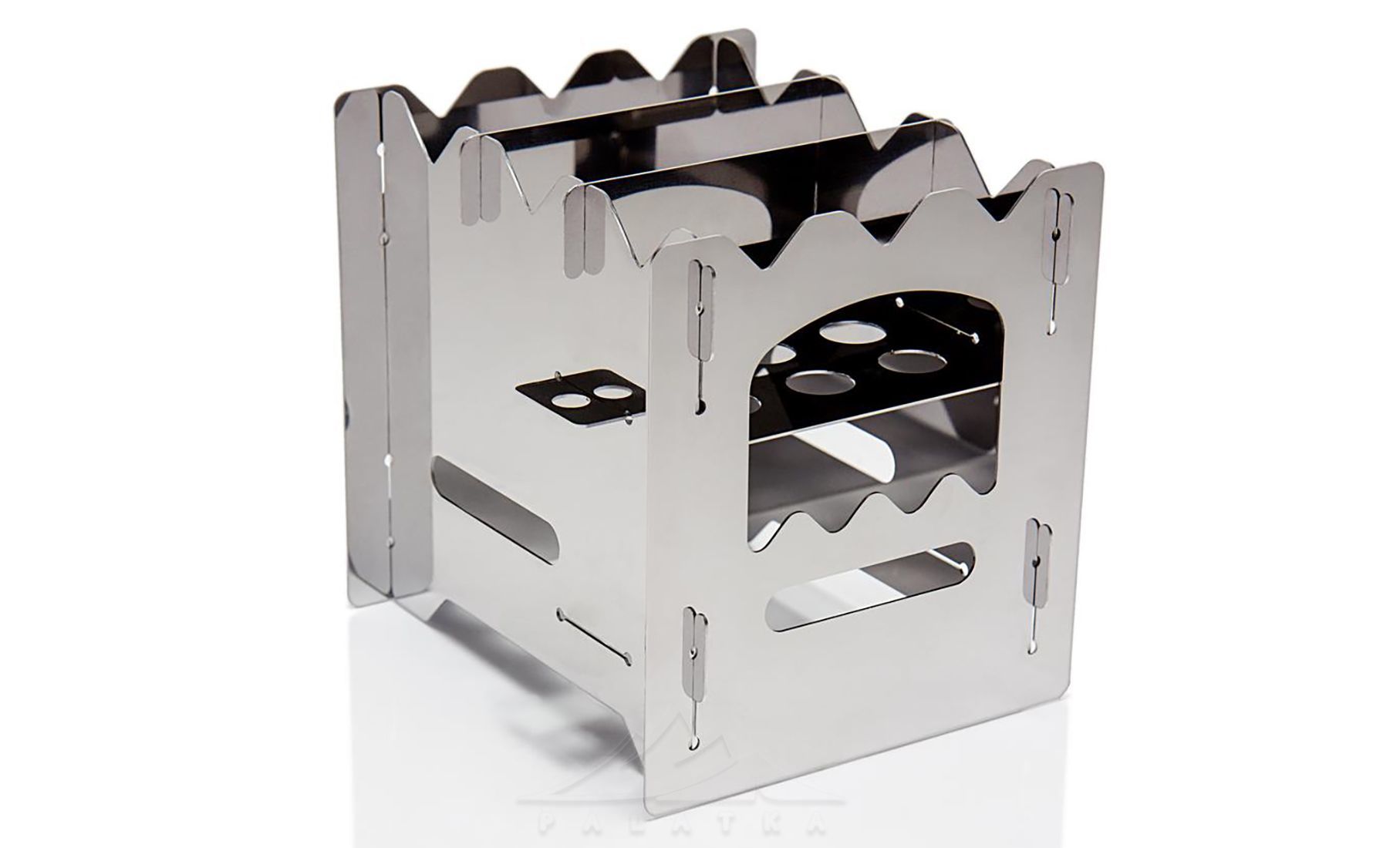 - Два положення решітки для палива. Нижнє - для збільшення об’єму топки (краще підходить для тріски чи пальника з рідким спиртом). Верхнє - для брикетів невеликого розміру: вугілля та таблеток cухого спирту.