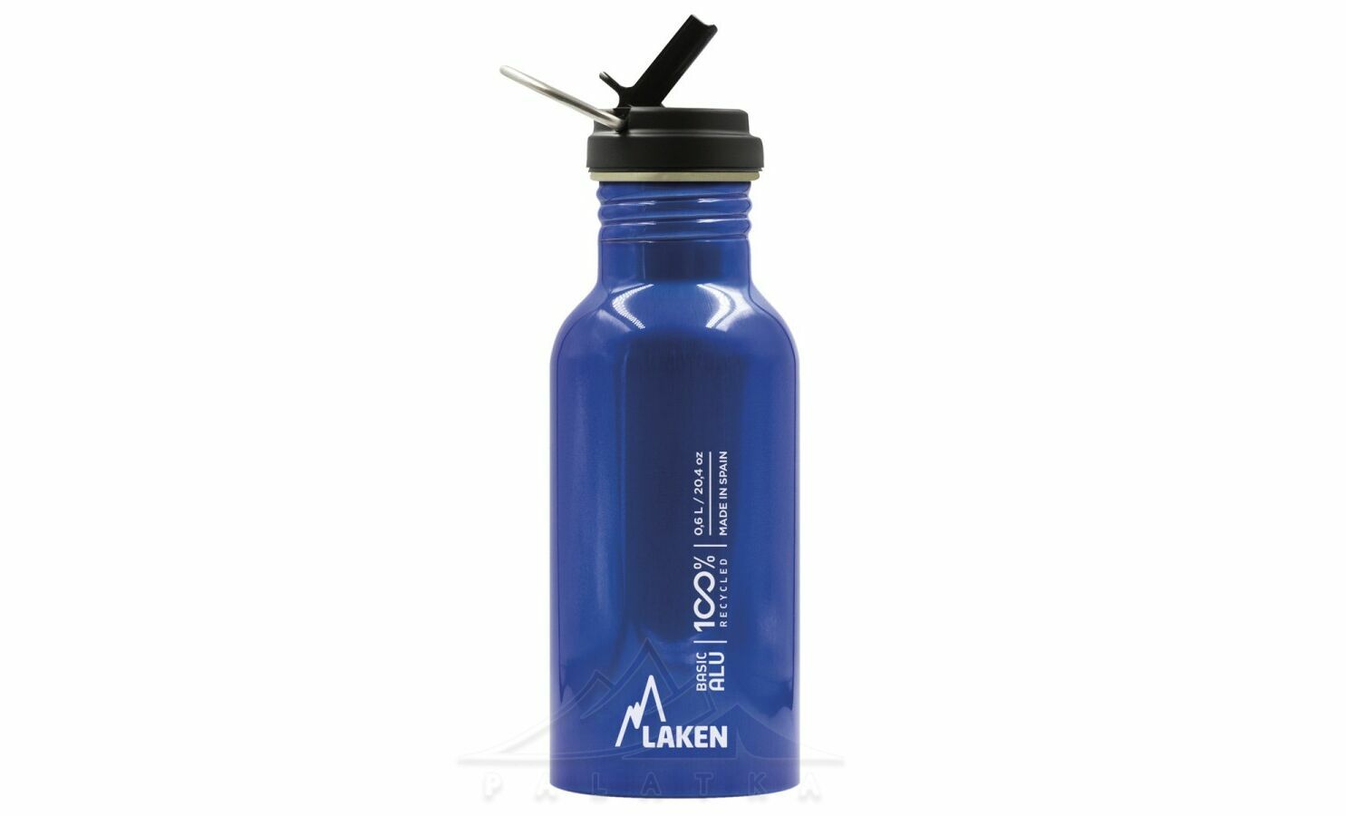Спортивна пляшка для води з поїлкою та трубочкою Laken Flow Alu (Blue) на 600 мл, алюміній