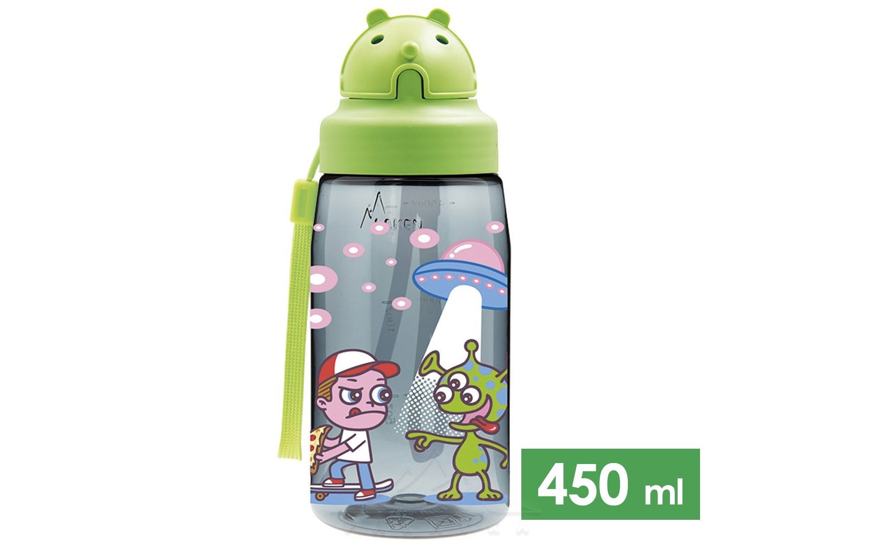 Пляшка Laken Tritan Oby зручна і практична, призначена для дітей, оснащена зручною кришкою-поїлкою з системою автоматичного відкриття та трубочкою, тому немає необхідності перевертати її під час пиття.