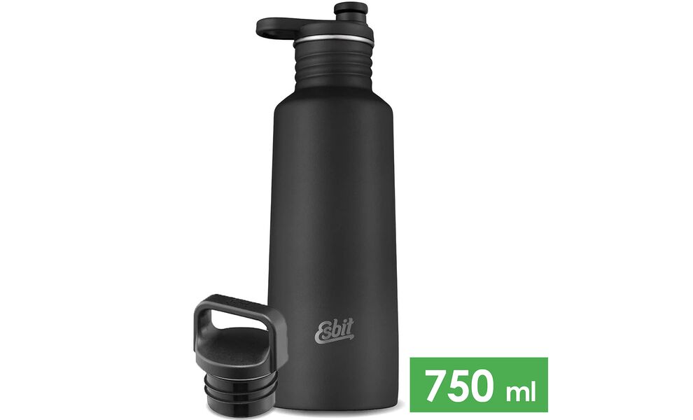 Спортивна пляшка для води з поїлкою та додатковою кришкою Esbit Pictor Sports (Black) на 750 мл, нержавіюча сталь