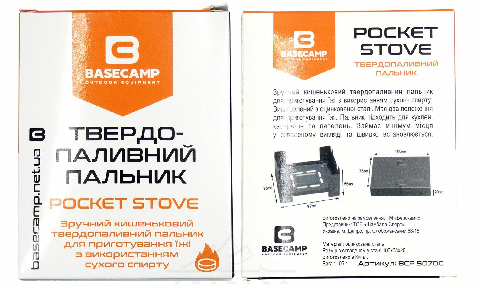 BaseCamp Pocket Stove - дуже зручний пальник для сухого палива, що має кишенькові розміри та малу вагу.