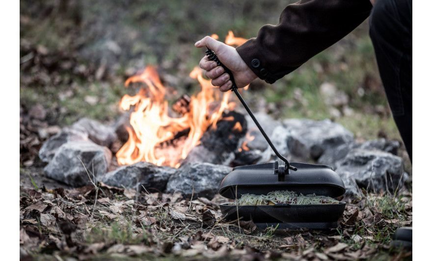- Знімати посуд, підвішений на тринозі Cooking Tripod, стійці Fire Anchor, перекладині Fire Bridge.