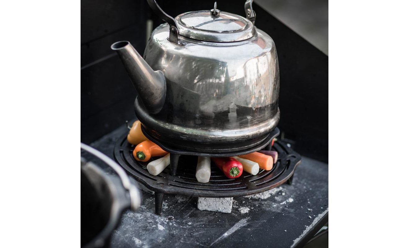 - Спеціальні отвори та ніжки дозволяють встановити декілька підставок одну на одну для приготування на пару в Dutch Oven.