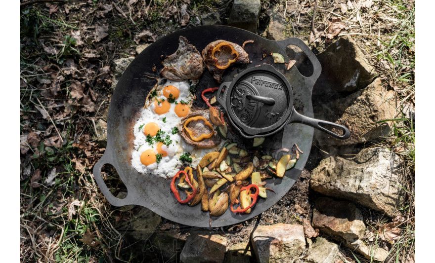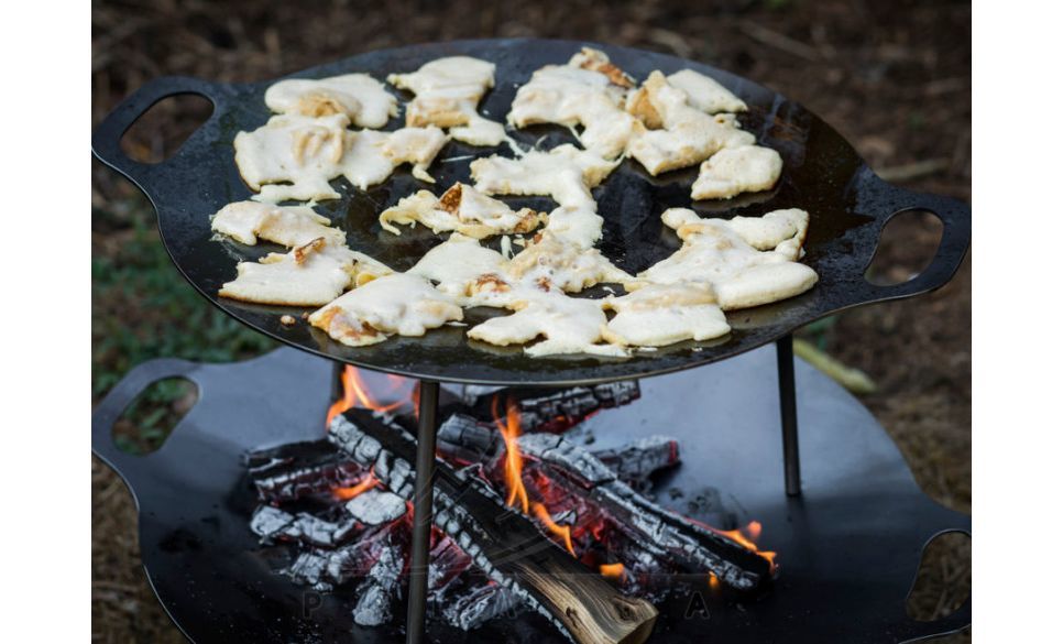 • Знімні ніжки на різьбі (23 см) забезпечують стабільність і дозволяють використовувати на різних поверхнях — як планчу, варильну поверхню або чашу для вогнища.
