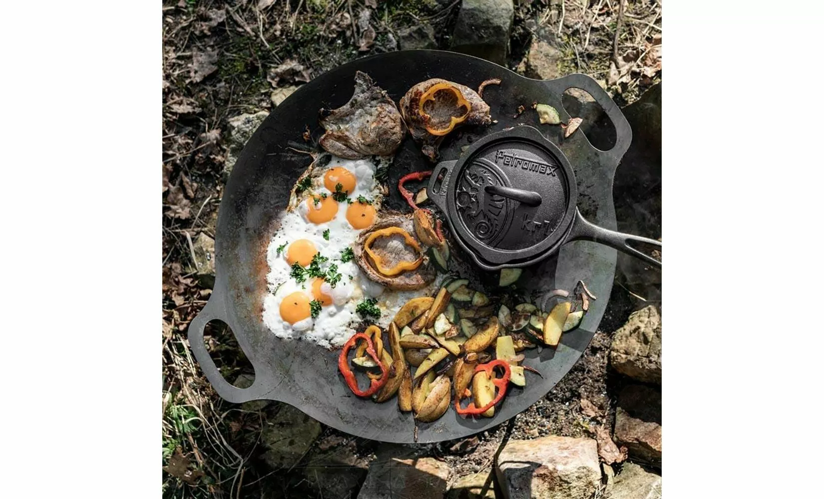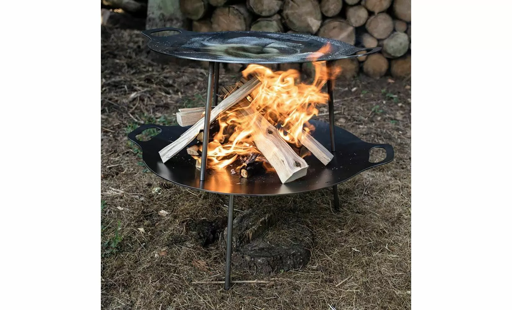 • Знімні ніжки на різьбі (23 см) забезпечують стабільність і дозволяють використовувати на різних поверхнях — як планчу, варильну поверхню або чашу для вогнища.