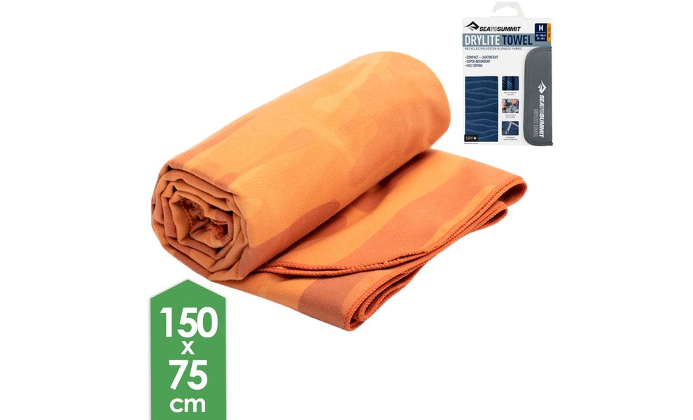 Швидкосохнучий рушник з мікрофібри Sea to Summit DryLite Towel підійде для подорожей, кемпінгу, відпочинку на природі, пляжу, тренувань і повсякденного використання, коли потрібен рушник із хорошим балансом між компактністю та комфортом. Це вдалий варіант для тих, хто хоче отримати більш щільну і приємну на дотик тканину, кращі поглинальні властивості, швидке висихання та зручний чохол для транспортування.