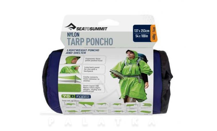 Пончо-тент Sea to Summit Tarp Poncho Sea to Summit Tarp Poncho — легкий нейлоновий пончо-тент з подвійними швами та регульованим капюшоном. Універсальний для захисту від негоди - підходить для використання як дощовик, так і укриття на двох осіб.