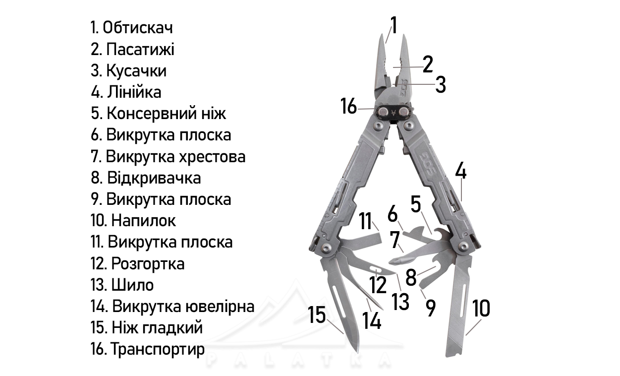 - Технологія SOG Compound Leverage забезпечує максимальну потужність при мінімальних зусиллях, щоб ваші руки не втомлювалися.