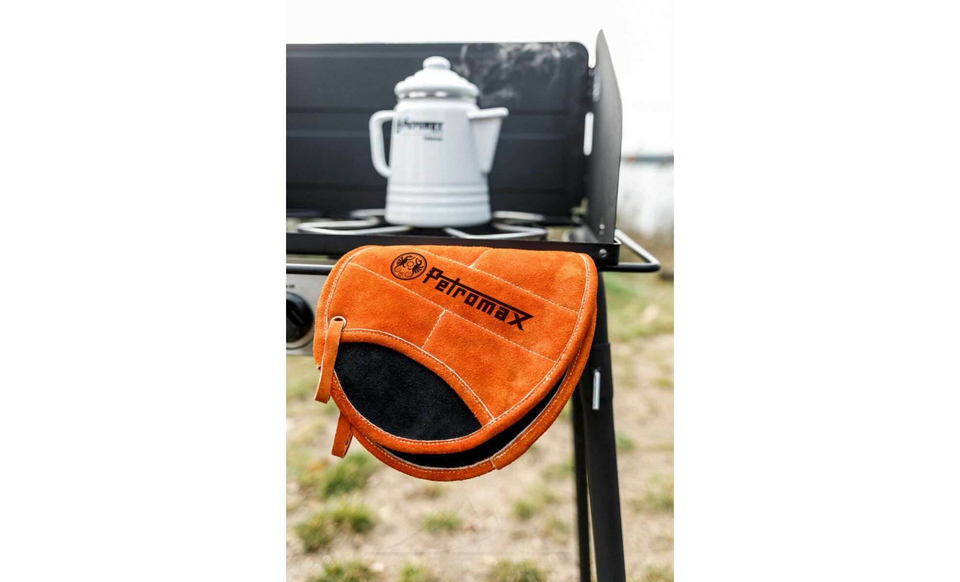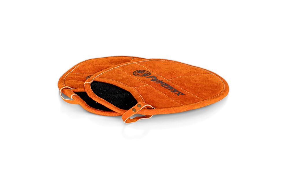 Petromax Aramid Pro 300 Potholders with Pocket — жаростійкі прихватки з натуральної шкіри, що витримують контактне тепло до 250°C. Ефективно захищають руки від полум’я та тепла, під час розпалювання вогнища або приготування барбекю.