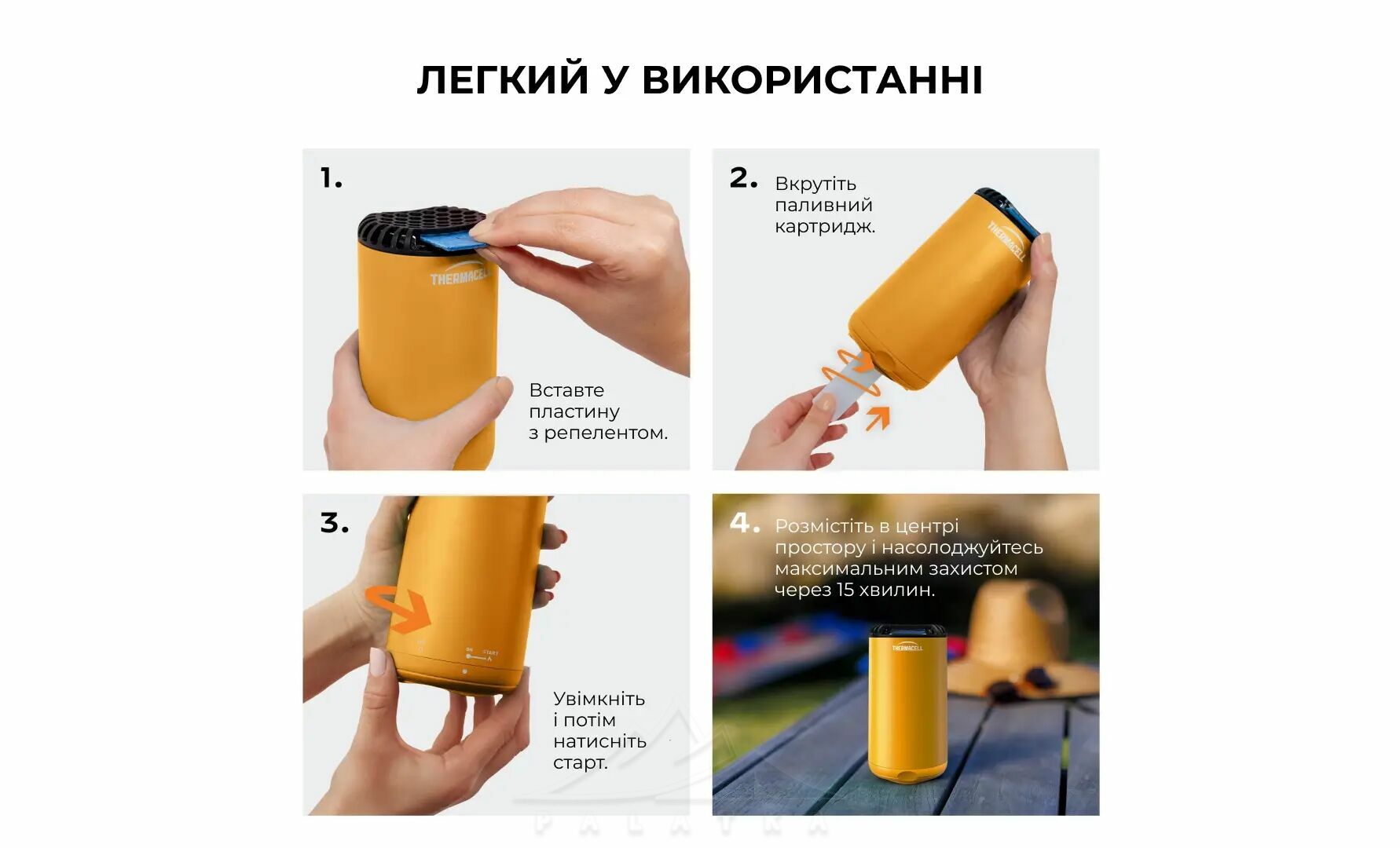 Thermacell Patio Shield Mosquito Repeller MR-PS — портативний пристрій для ефективного захисту від комах без запаху, диму та розбризкування. Практичний вибір для активного відпочинку на природі, кемпінгу, риболовлі чи пікніку.