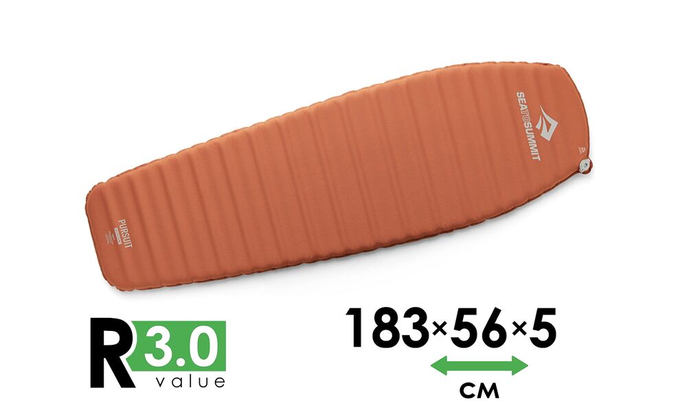 Sea to Summit Pursuit SI — утеплений самонадувний килимок для весняно-осіннього сезону, який чудово підходить для кемпінгу, подорожей або походів. Достатньо розгорнути його, відкрити клапан — і він самостійно набуде потрібної форми.