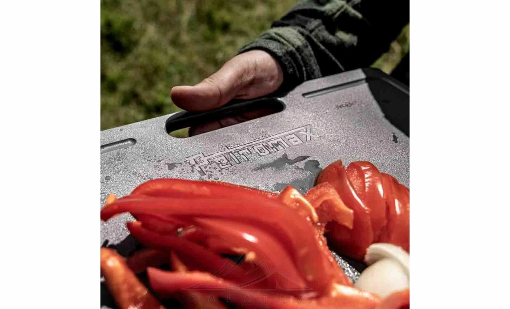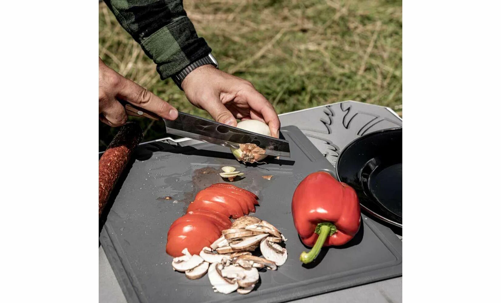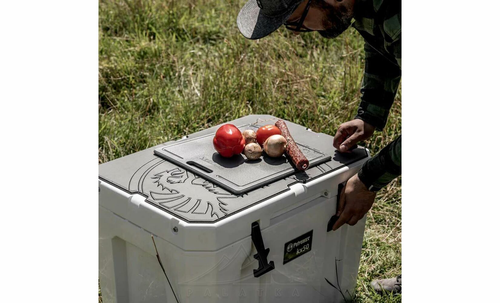 Обробна дошка-перегородка — багатофункціональний аксесуар, що підходить для нарізання, сервірування та в якості перегородки для розподілу простору термобоксу Petromax Passive Cooler Box об'ємом 50 літрів.