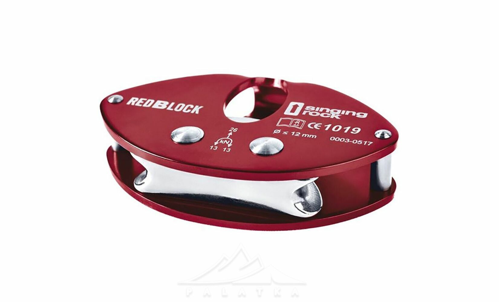 Singing Rock Redblock — легкий і довговічний блок зі сталевим шківом, спеціально створений для постійних точок кріплення. Використовується в парках пригод, скелелазних залах, на тренувальних стендах і в будь-яких ситуаціях, де потрібна надійна фіксована точка.