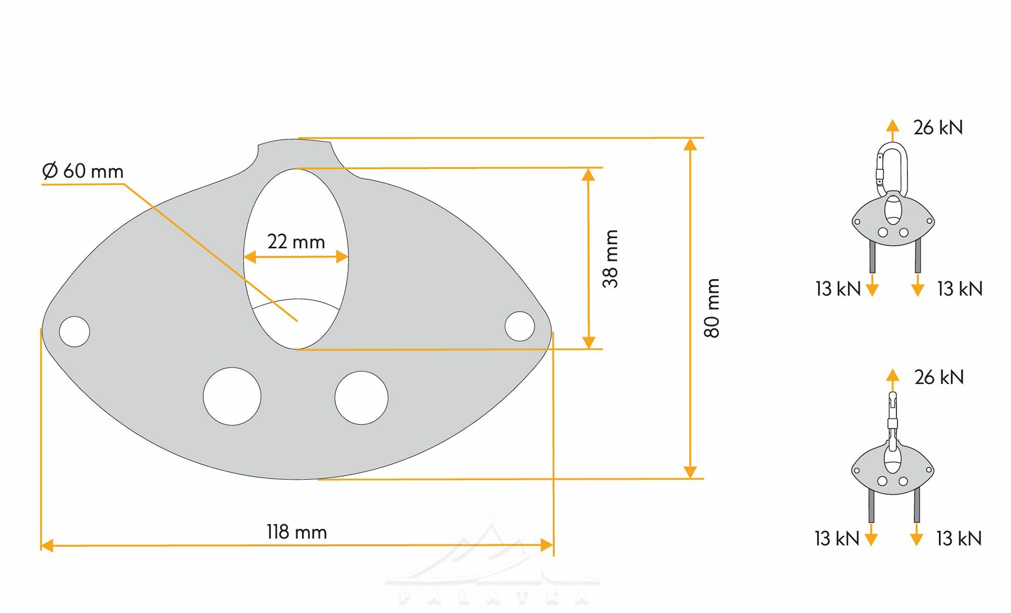 - Дві точки підвіски для гнучких варіантів використання та розподілу навантаження.