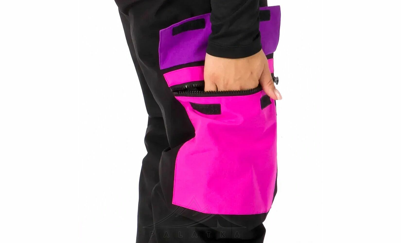 - Снігозахисні бахіли в нижній частині штанин, що запобігають потрапляння снігу всередину.
