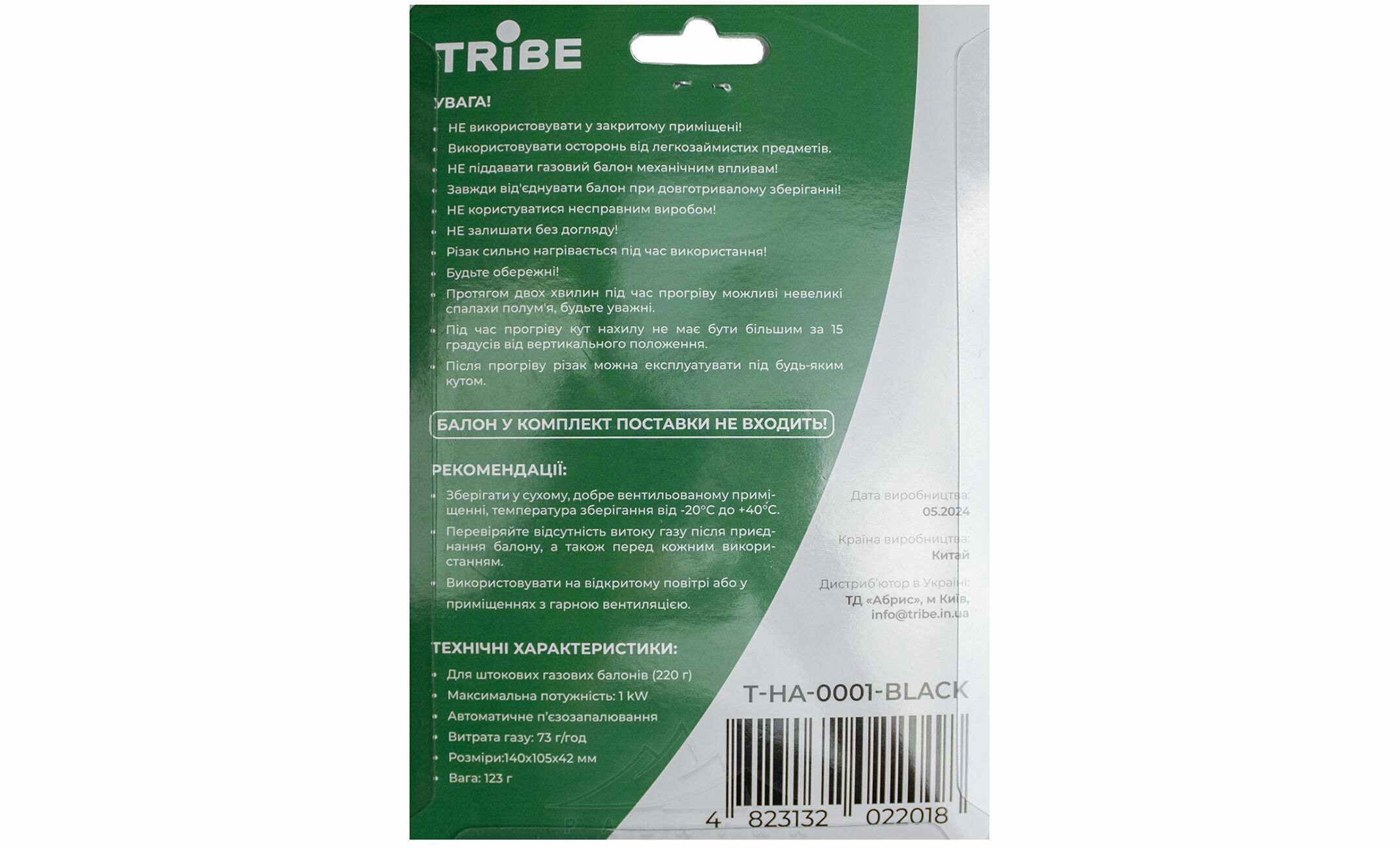 Газовий різак Tribe Spark T-HA-0001— призначений для нескладного зварювання, відігрівання замерзлих труб, ремесел, розпалювання деревного вугілля для барбекю, приготування їжі.