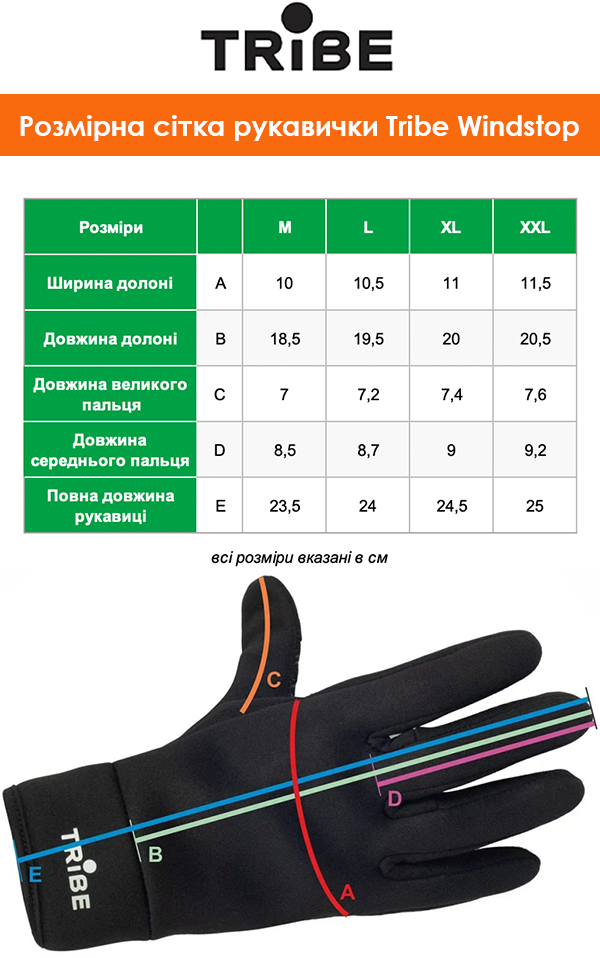 Tribe Windstop — еластичні неопренові рукавички середньої товщини з тактильними вставками для захисту від прохолодної погоди, вітру, та легкої вологи. Універсальні - підходять для туризму, бігу, зимового спорту, або повсякденного використання.