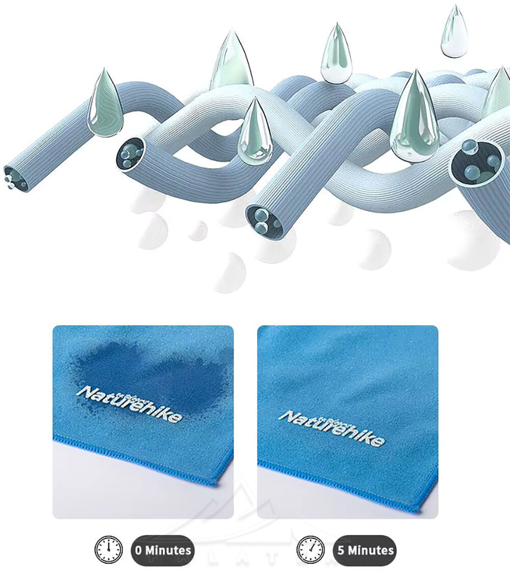 • Швидке висихання — висихає у кілька разів швидше, ніж бавовняні рушники — ідеальний варіант у дорозі або польових умовах.