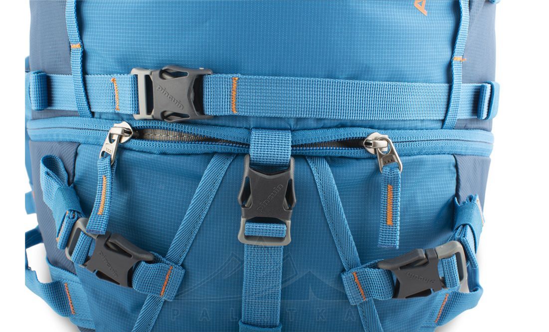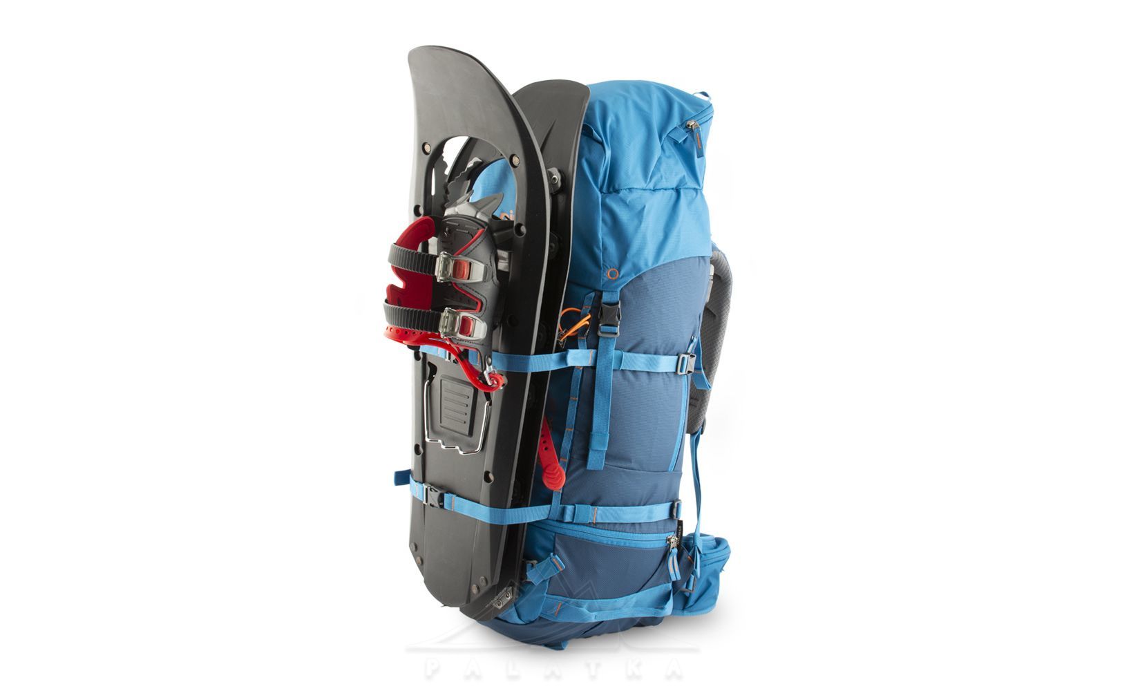 - 4 стяжки на фастексах, 2 еластичні петлі для зовнішнього кріплення льодового спорядження, трекінгових палиць, лиж, снігоступів, каски.