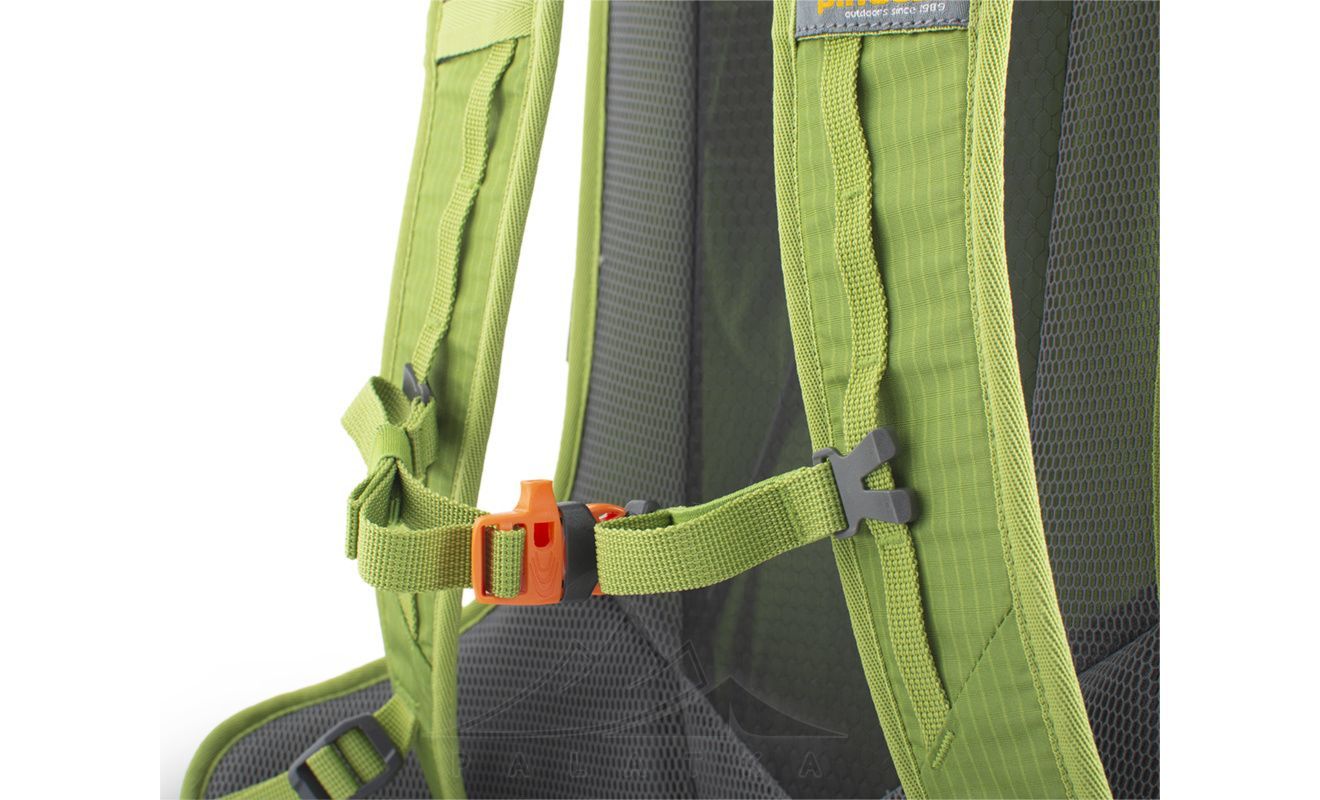 • Знімний нагрудний ремінь з аварійним свистком, який регулюється по висоті.