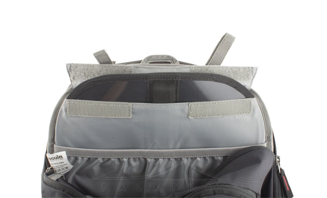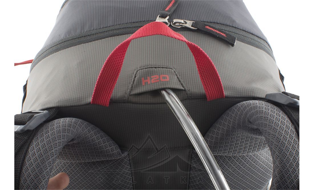 - Широка задня частина рюкзака посилена знімною пластиною з HDPE з вбудованим дюралюмінієвим посиленням, яке допомагає розподілити вагу вантажу на спині.