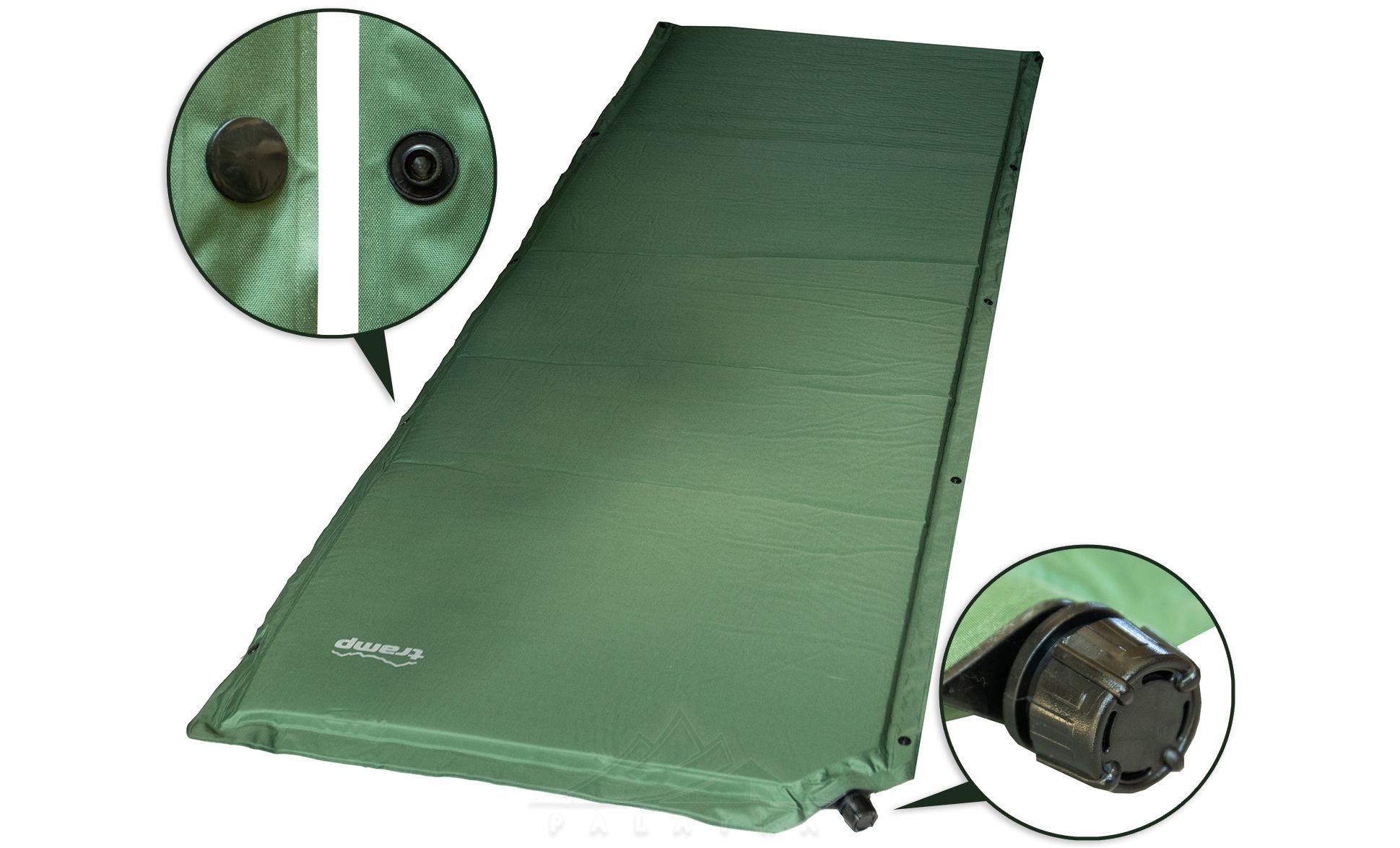 Tramp UTRI-004 Connect — самонадувний килимок, який не потребує значних зусиль для надування, чудово підійде для організації спальної зони в теплі пори року під час кемпінгу, подорожей або походів.