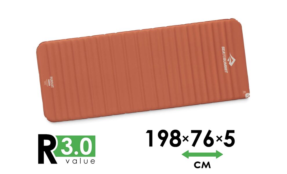 Sea to Summit Pursuit SI — утеплений самонадувний килимок для весняно-осіннього сезону, який чудово підходить для кемпінгу, подорожей або походів. Достатньо розгорнути його, відкрити клапан — і він самостійно набуде потрібної форми.