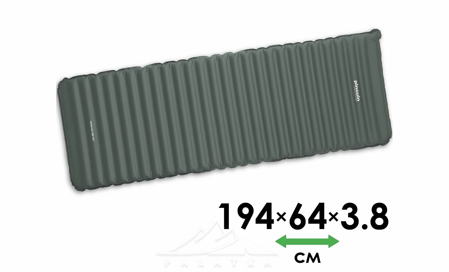 Самонадувний килимок Pinguin Nomad 38 NX - килимок прямокутної форми, який не потребує значної сили при надуванні. Чудово підійде для організації спального місця під час кемпінгу та подорожей.