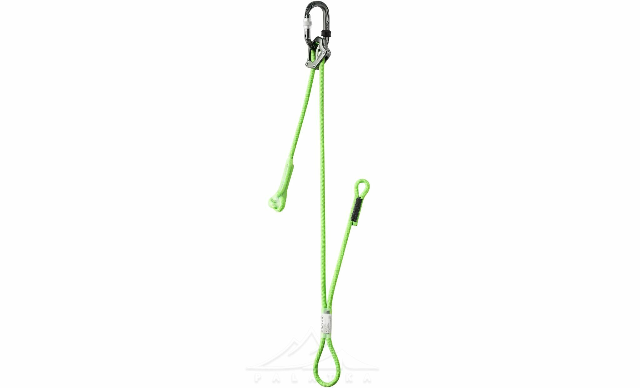 - Велика з’єднувальна петля дозволяє вв’язати самостраховку в систему напівсхоплювальним вузлом, економлячи карабін і зменшуючи кількість ланок у страховці.