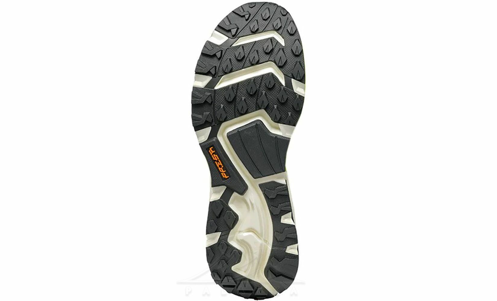 - Підошва Presa® TRN-02 — гумова підошва з високоякісної гуми і виступами 4 мм, з фірмовим дизайном Scarpa гарантує надійне зчеплення на різних типах рельєфу.