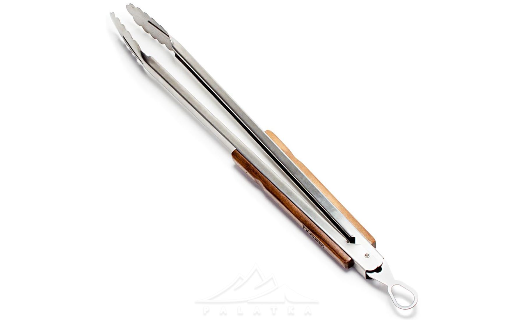 - Вигнута голова щипців дозволяє легко захоплювати та розміщувати їжу, вугілля або брикети.