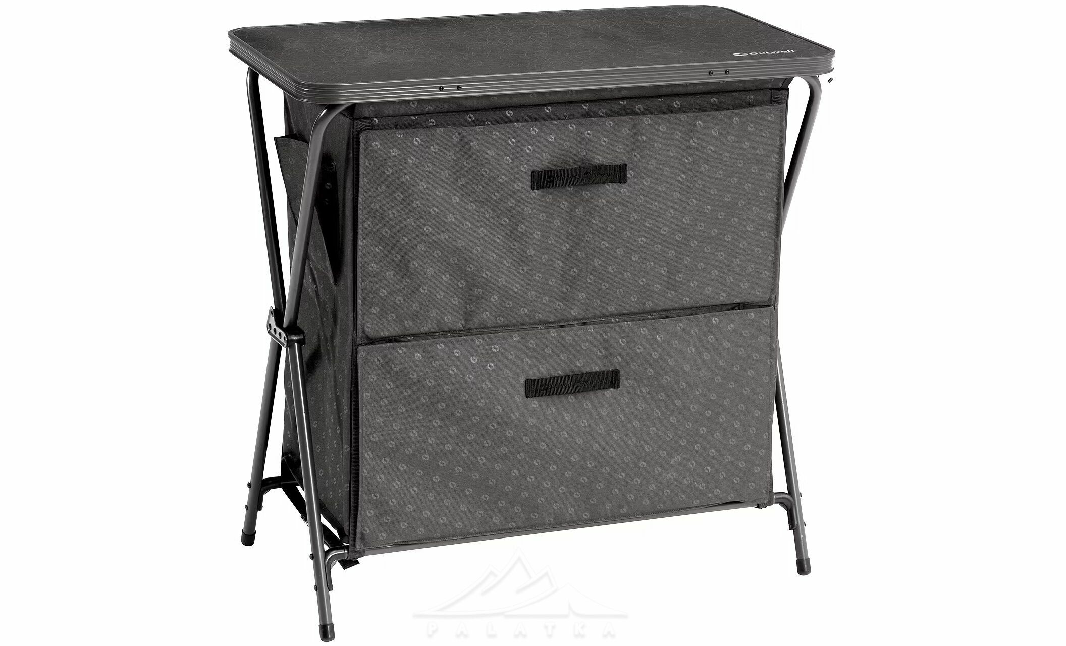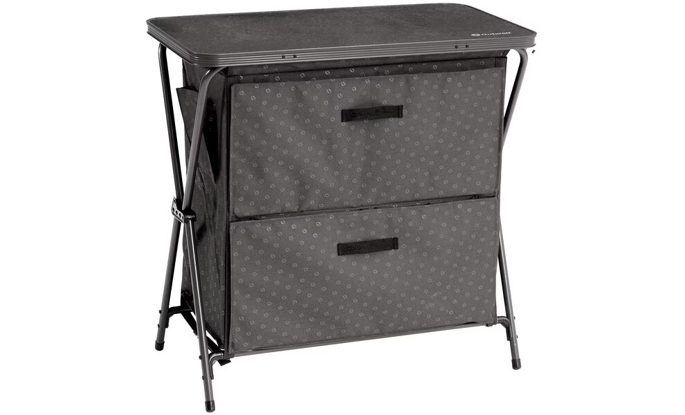 Outwell Bahamas Cabinet — функціональна складна кемпінгова тумба з трьома шухлядами, яка ідеально підходить для організованого зберігання кухонного приладдя, посуду або аксесуарів. Практичне рішення для кемпінгу, дачі чи відпочинку на природі.
