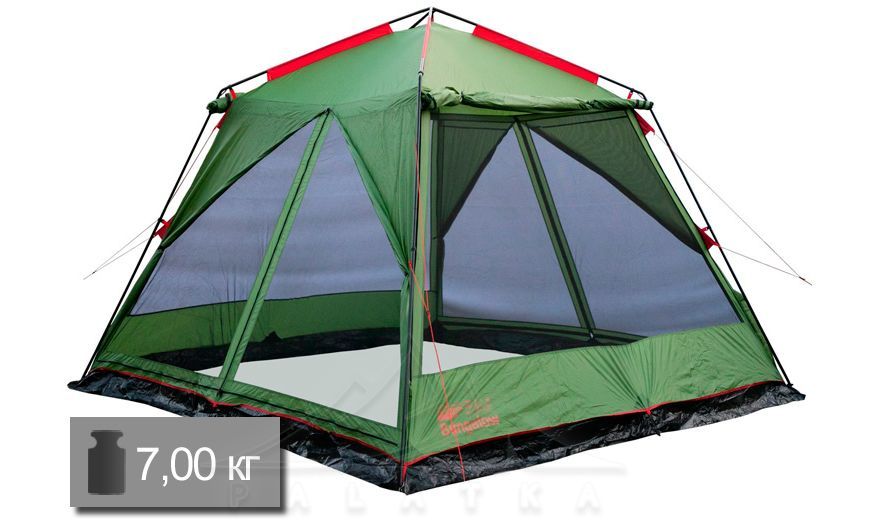 Шатер Tramp TLT-015.06 Bungalow — просторий високий шатер квадратної форми для організації кемпінгової кухні, столової чи кают-компанії для мешканців туристичного табору. Полегшена версія моделі шатру Tramp TRT-085 Bungalow Lux V2.