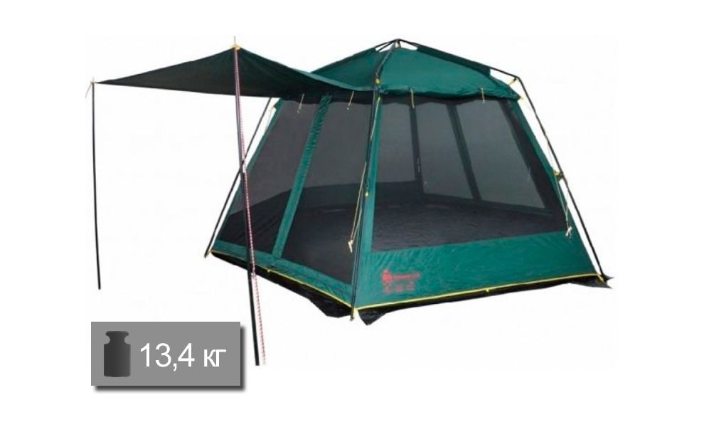 Шатер Tramp TRT-087 Mosquito Lux v2 — просторий високий шатер шестикутної форми для організації кемпінгової кухні, столової чи кают-компанії для мешканців туристичного табору.