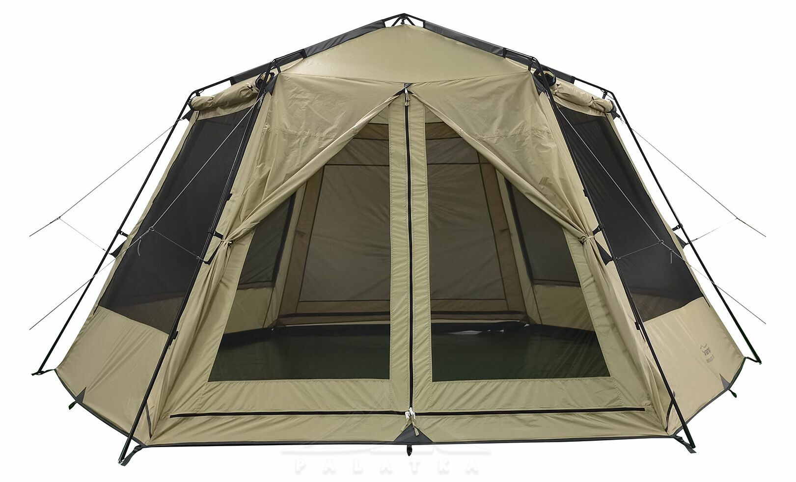 • Тканинні панелі на блискавках поверх сітки — можна закрити стінки від вітру або дощу, зберігаючи комфорт у таборі.