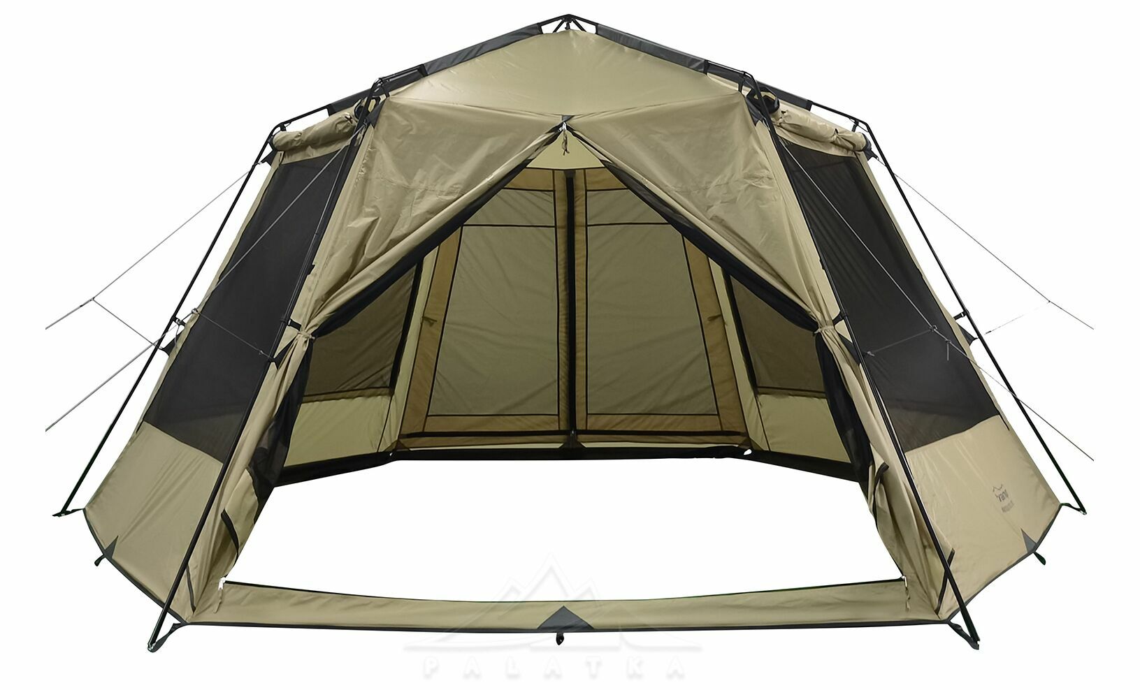 • Відсутня підлога — практично для кемпінгу з меблями: зручніше ставити стіл і стільці на ґрунт, легше заходити в брудному взутті, простіше прибирати. За потреби підлогу можна докупити окремо.