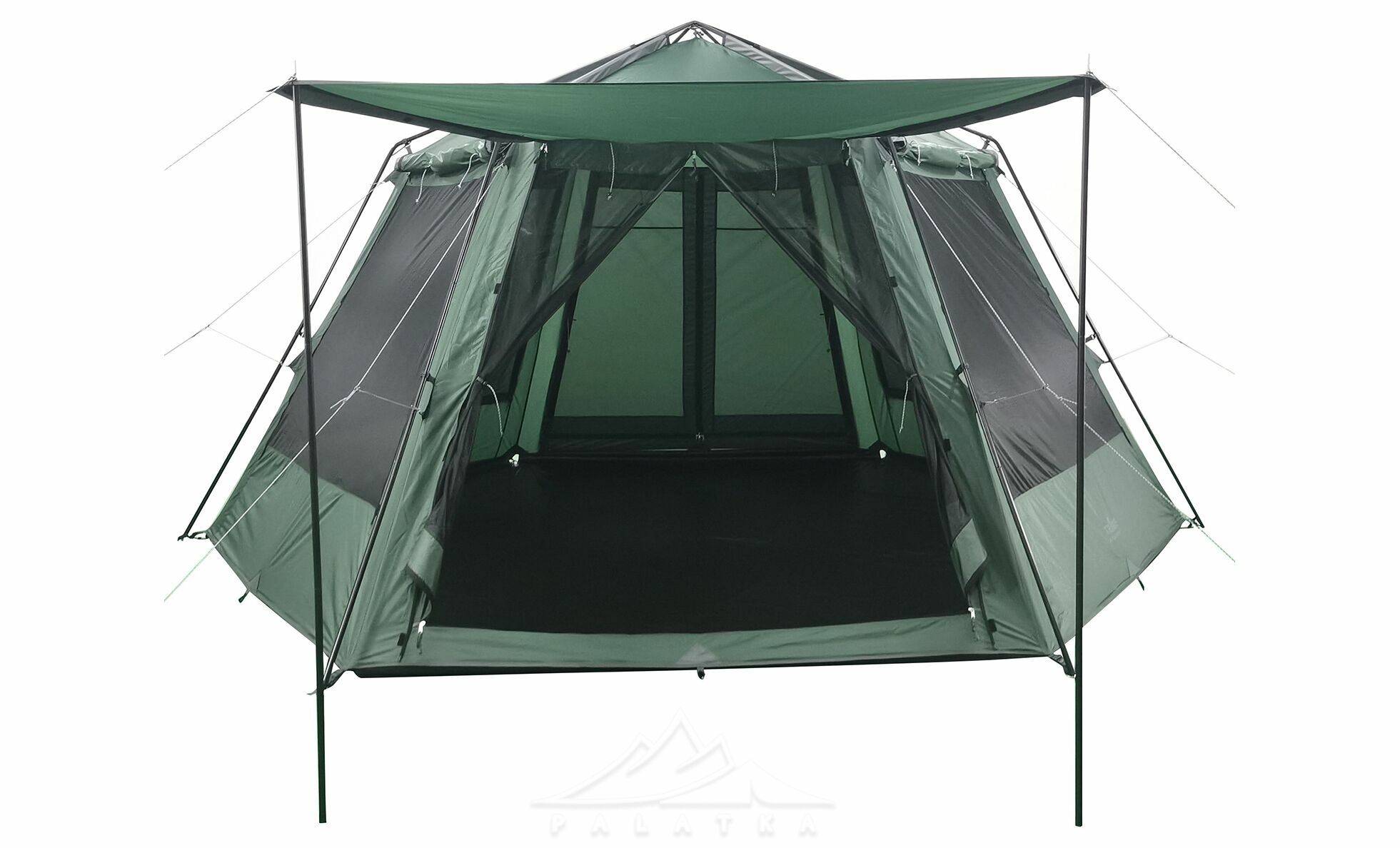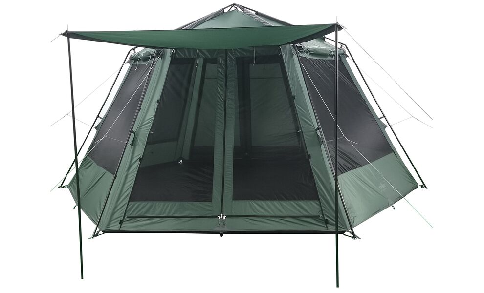 Кемпінговий шатер Tribe Mosquito Pro — просторе шестикутне укриття для тривалого відпочинку на природі, коли важливо мати комфортну спільну зону під дахом. Висота 225 см дозволяє вільно заходити та стояти на повний зріст, тому шатер зручно використовувати як табірну зону для кухні, столу та відпочинку.