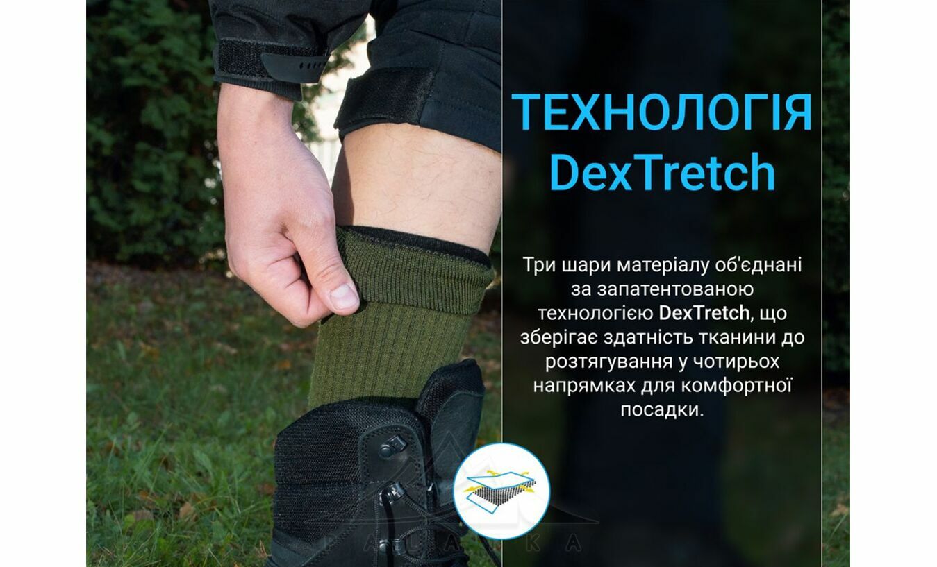 зовнішній: 33% нейлон, 32% акрил, 30% вовна Merino, 5% еластан; середній: мембрана Porelle®; внутрішній: 38% вовна Merino, 38% акрил, 24% нейлон