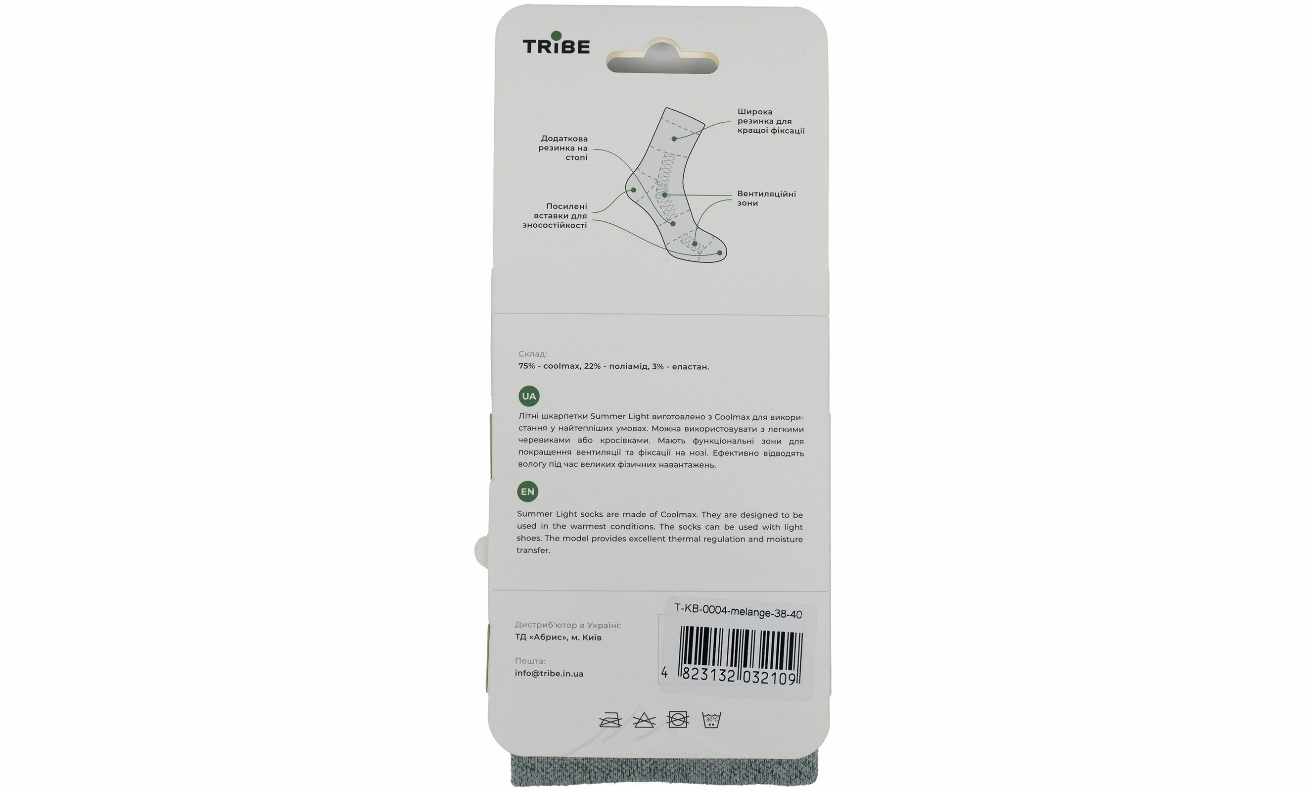 75% поліестер Coolmax®, 22% нейлон, 3% еластан