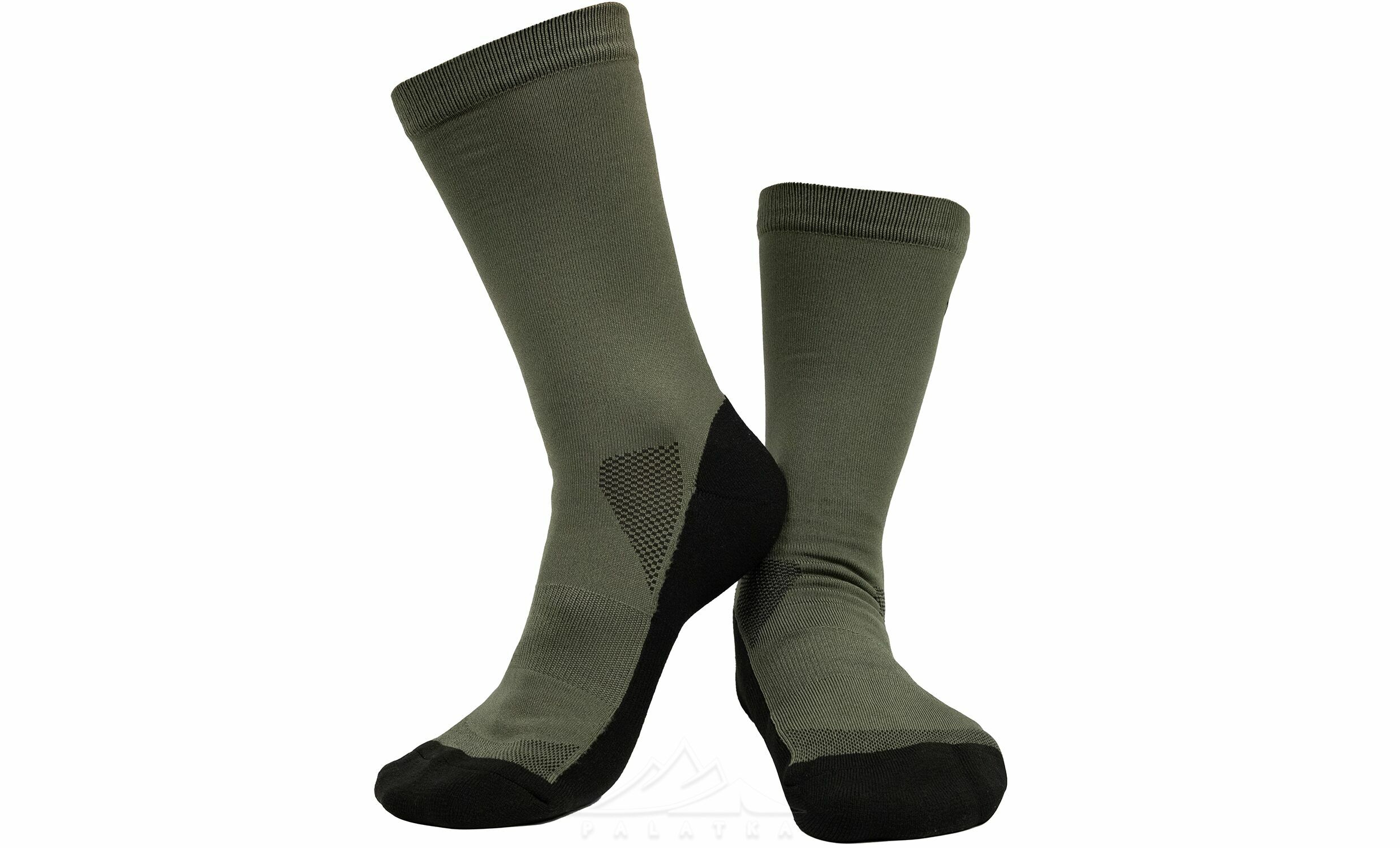 - Виготовлені з комбінації поліпропілену, нейлону та еластану, що гарантує легкість, швидке висихання та високу зносостійкість. Завдяки еластичності матеріалу шкарпетки щільно й зручно прилягають до стопи, не втрачаючи форму навіть під час інтенсивного використання.