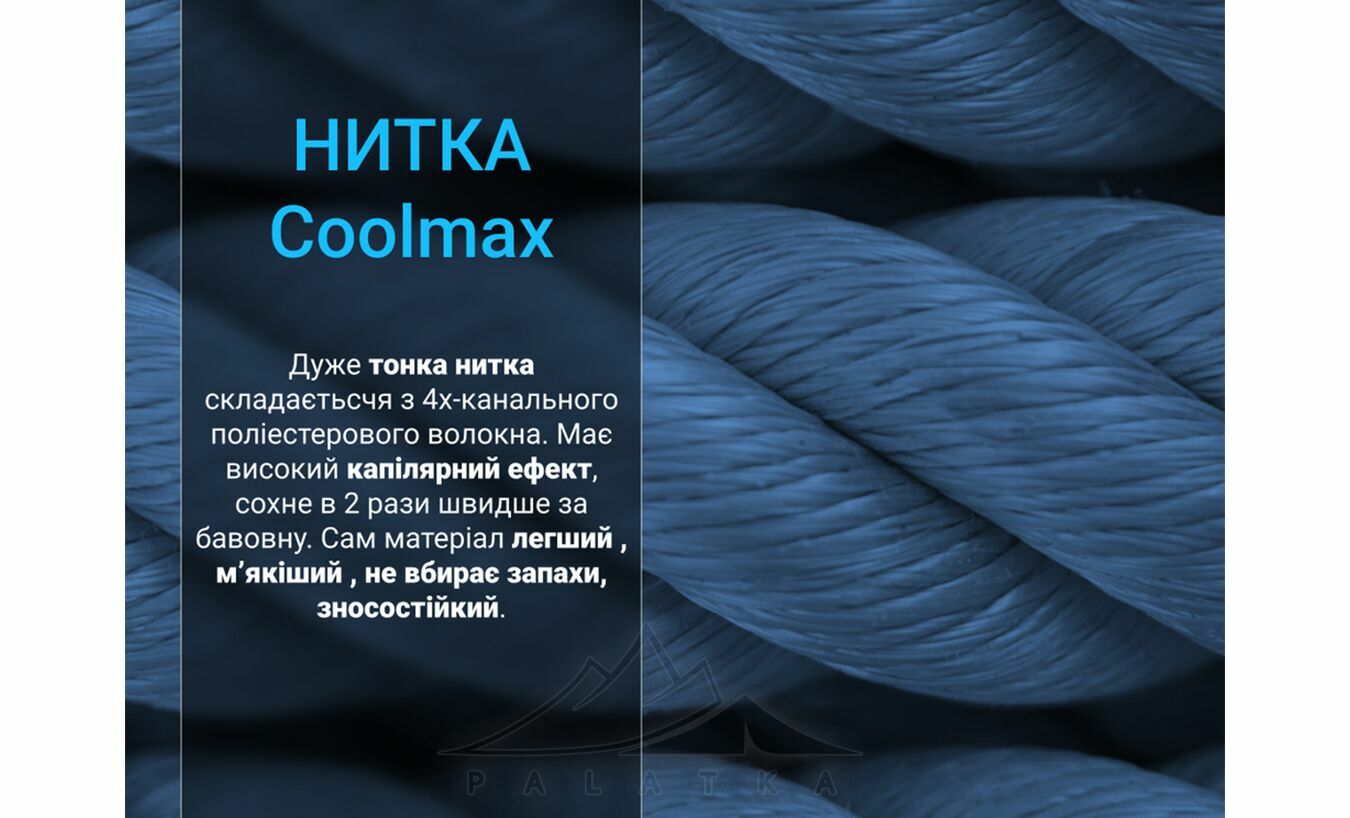 зовнішній: 80% нейлон, 12% поліестер, 5% еластан, 3% бавовна; середній: мембрана Porelle®; внутрішній: 60% поліестер Coolmax®, 40% нейлон