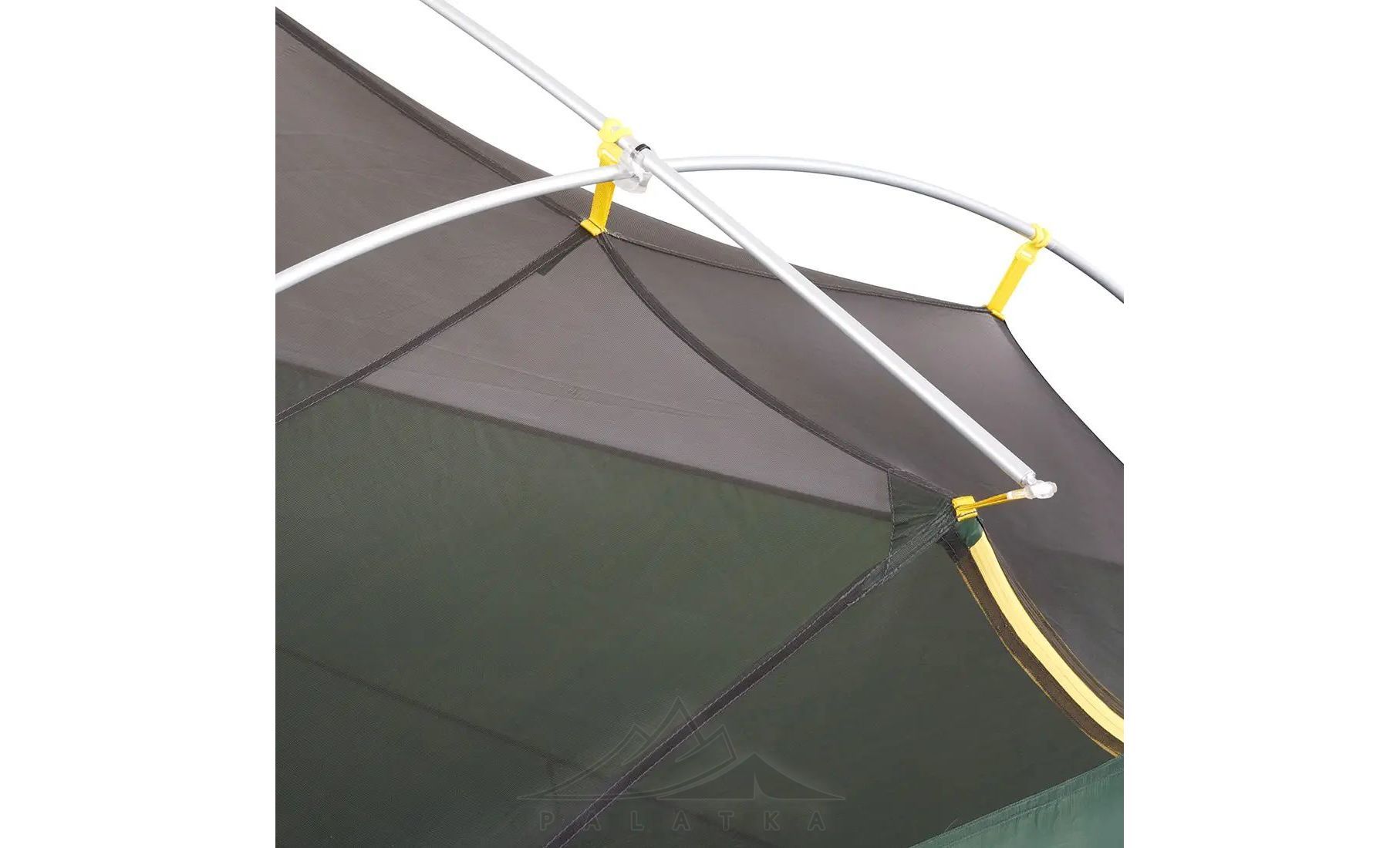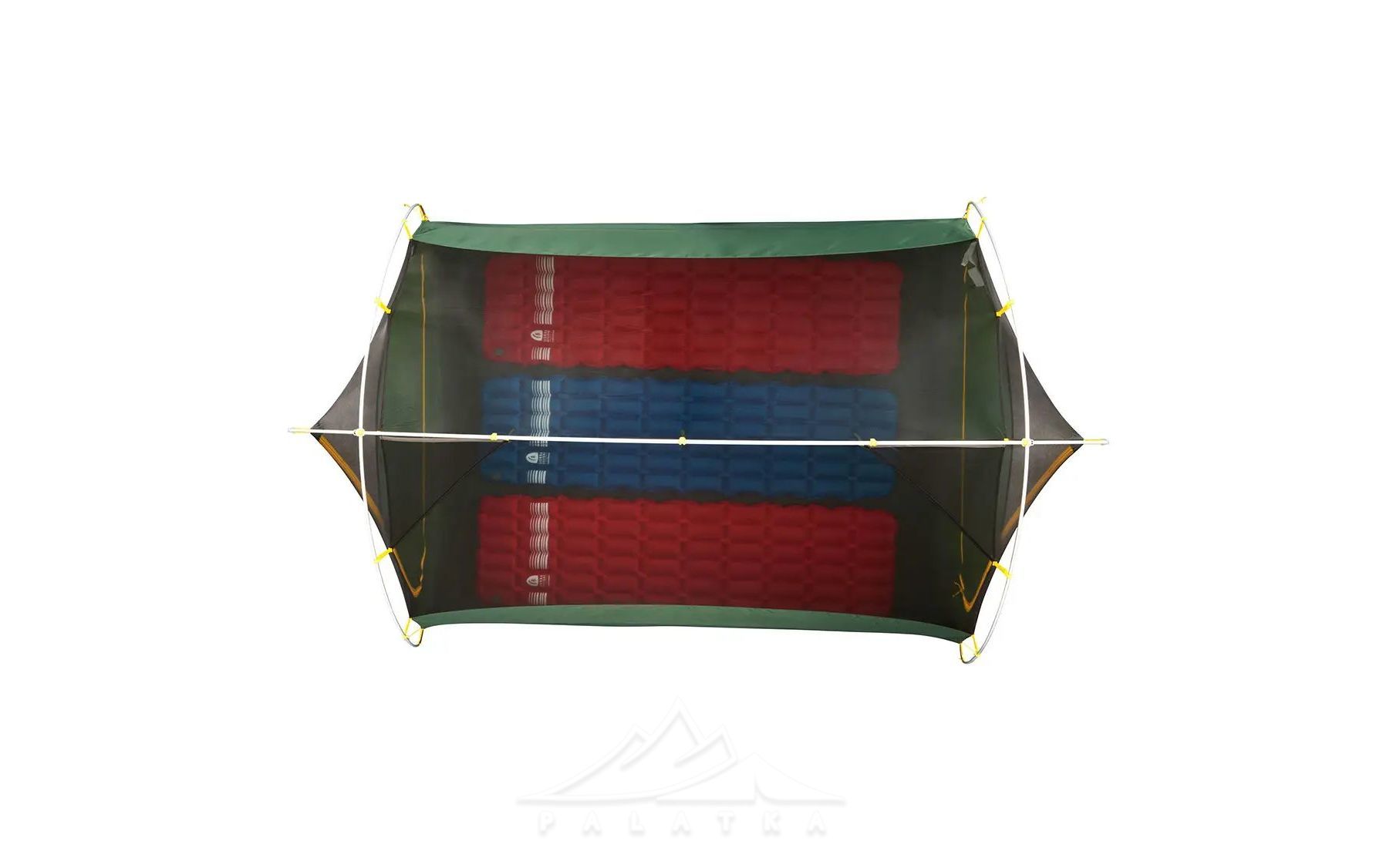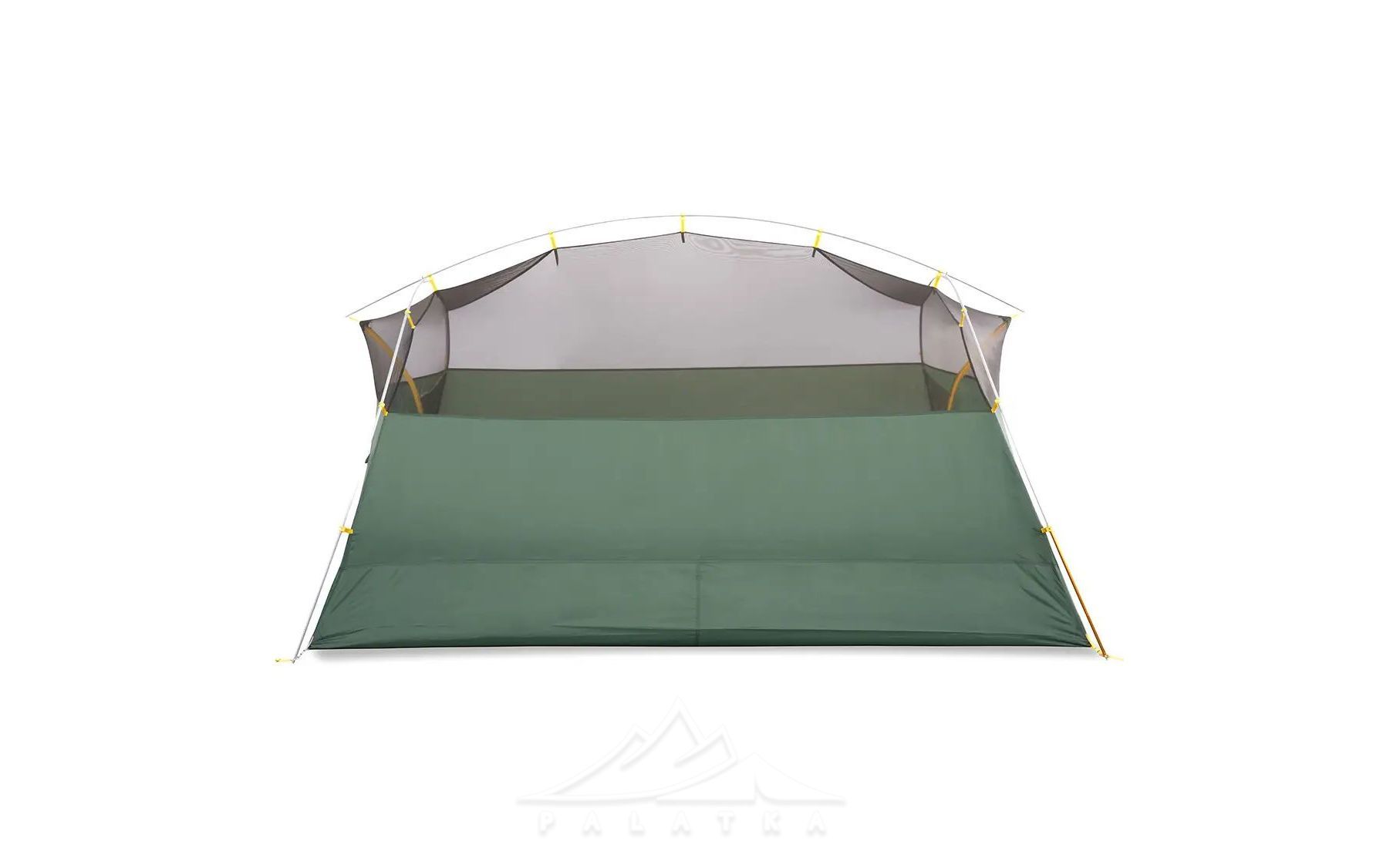 - Матеріали: внутрішній намет з 15D нейлонової сітки No-See-Um — дрібна москітна сітка, що добре вентилюється і не пускає комах; підлога з високими бортами з щільного 68D поліестеру Taffeta PU- та FR-просочення; зовнішній тент з 68D поліестеру Taffeta PU- та FR-просочення;