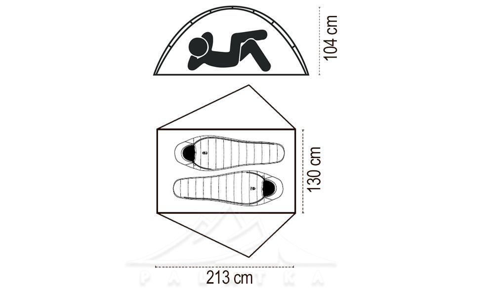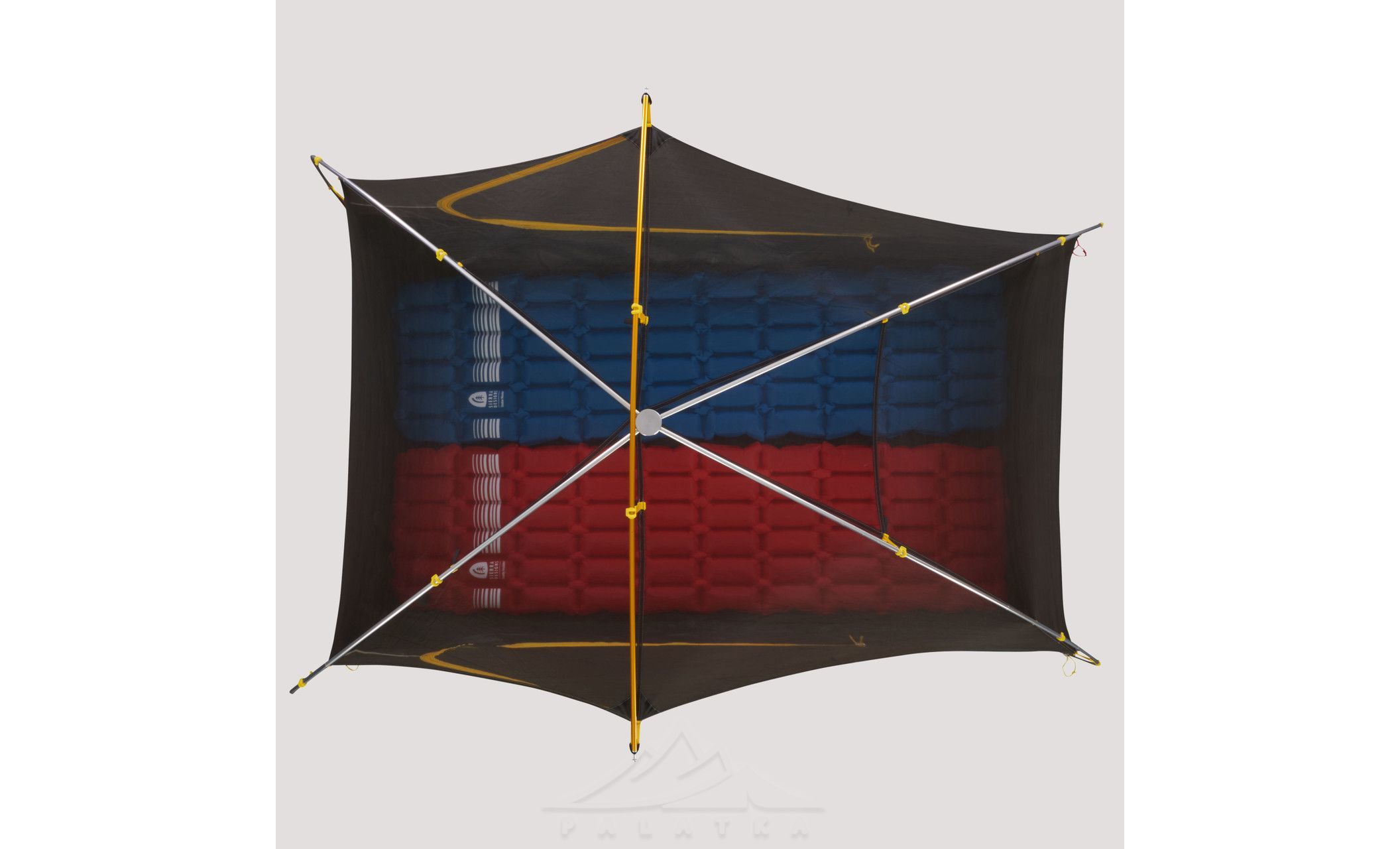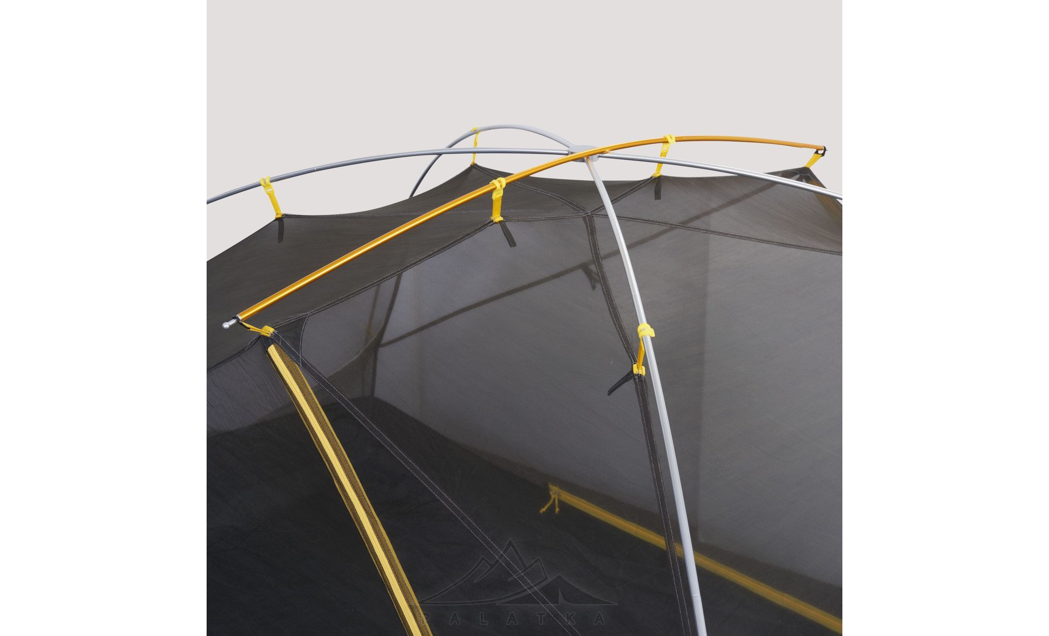 - Внутрішній намет (спальня) практично повністю зроблений з москітної сітки. Це полегшує вагу намету та покращує вентиляцію.